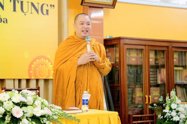 Trong phần chia sẻ, ĐĐ. Minh Điệp đã thưa rõ về nhân duyên hình thành tác phẩm, đó là kết quả của nhiều năm tháng miệt mài học tập, tu tập và trăn trở từng câu kinh, từng nhịp thơ. "Kinh Nikaya tuyển tụng" không chỉ là một công trình văn học Phật giáo, mà còn là sự kết tinh của tâm huyết hành trì, nơi lời Phật được chuyển tải bằng nhịp điệu gần gũi của hồn thơ Việt.