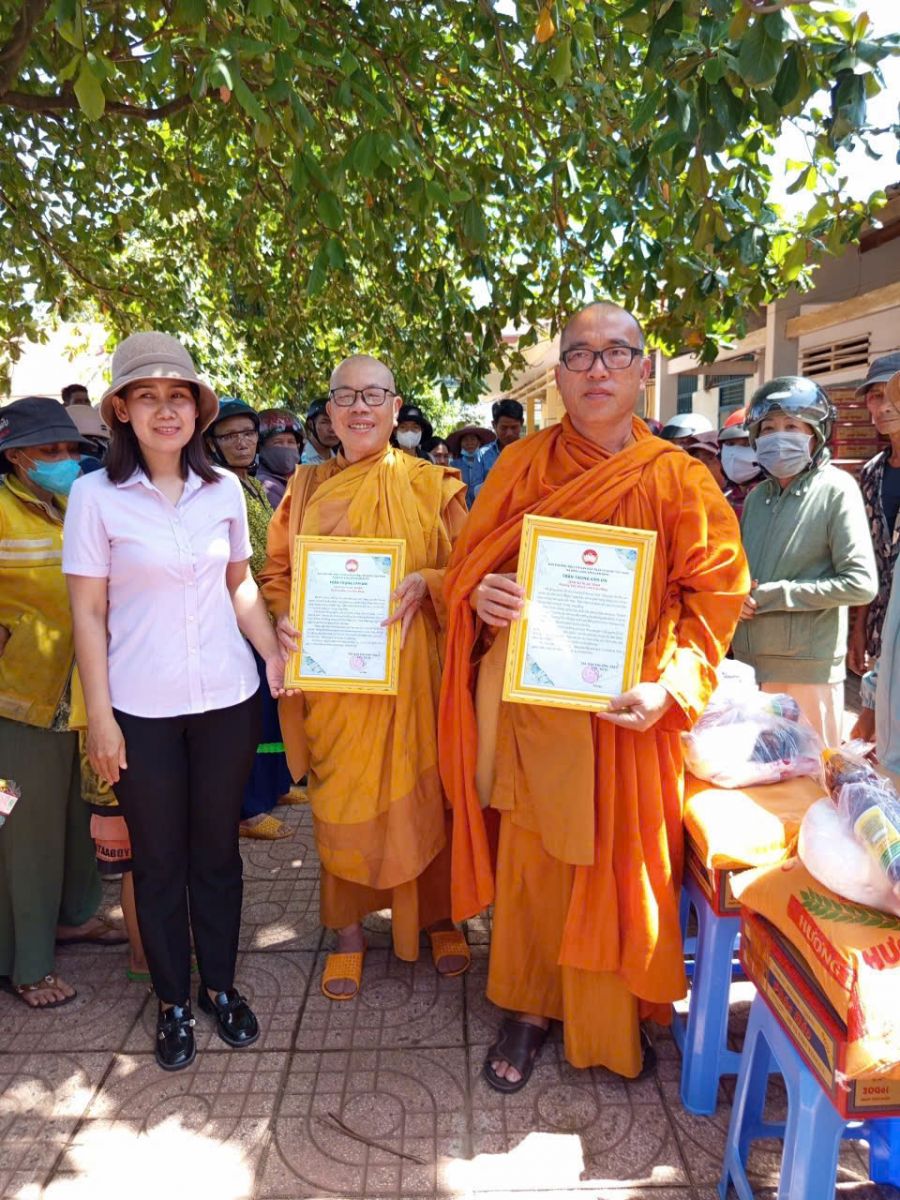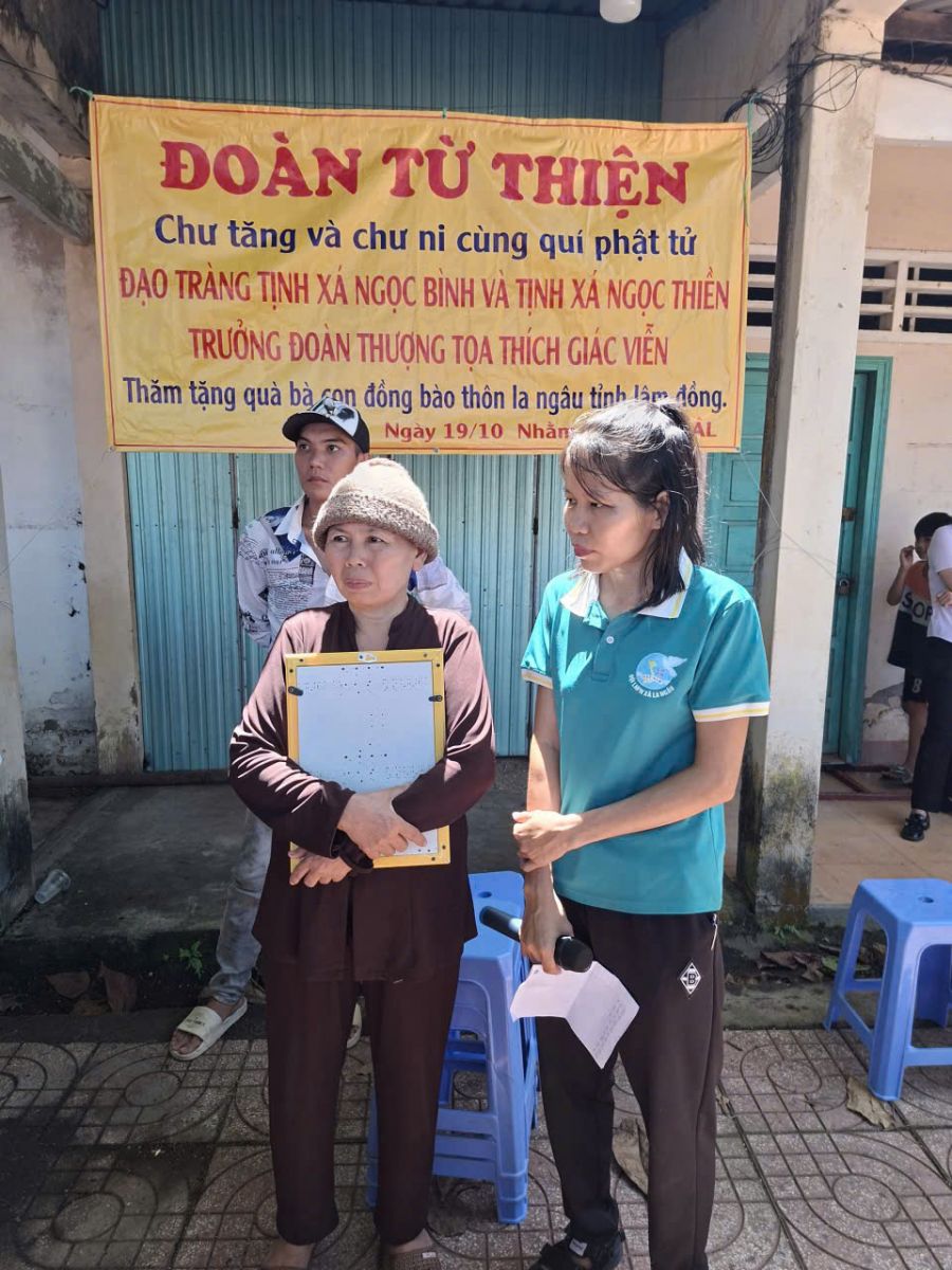 Đoàn từ thiện do TT. Giác Viễn – Trụ trì Tịnh xá Ngọc Bình và NT. Mẫn Liên – Trụ trì Tịnh xá Ngọc Thiền, hướng dẫn. Theo đó, đoàn đã gửi tặng 100 phần quà với tổng trị giá 90 triệu đồng đến bà con đồng bào Cơ Ho. Mỗi phần quà bao gồm nhu yếu phẩm thiết yếu, nhằm hỗ trợ bà con vượt qua khó khăn trong đời sống sinh hoạt hằng ngày.
