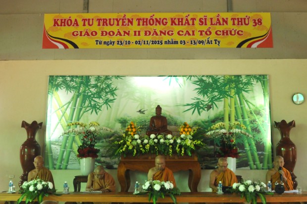 Nối tiếp thời pháp thoại trong ngày thứ 5 của khóa tu Truyền thống Khất sĩ lần thứ 38, chiều 27/10/2025 (7/9/Ất Tỵ), TT. Giác Trực – Tri sự trưởng GĐ.II PGKS, trụ trì Tịnh xá Ngọc Nhơn, Phó ban kiêm Hóa chủ khóa tu, đã có buổi chia sẻ về kinh nghiệm tu tập của bản thân, giúp chư hành giả có cơ hội “bình tâm tỉnh trí”, nhận định sâu sắc và mở lòng học hỏi để soi chiếu lại chính mình trên bước đường tầm cầu đạo giải thoát.