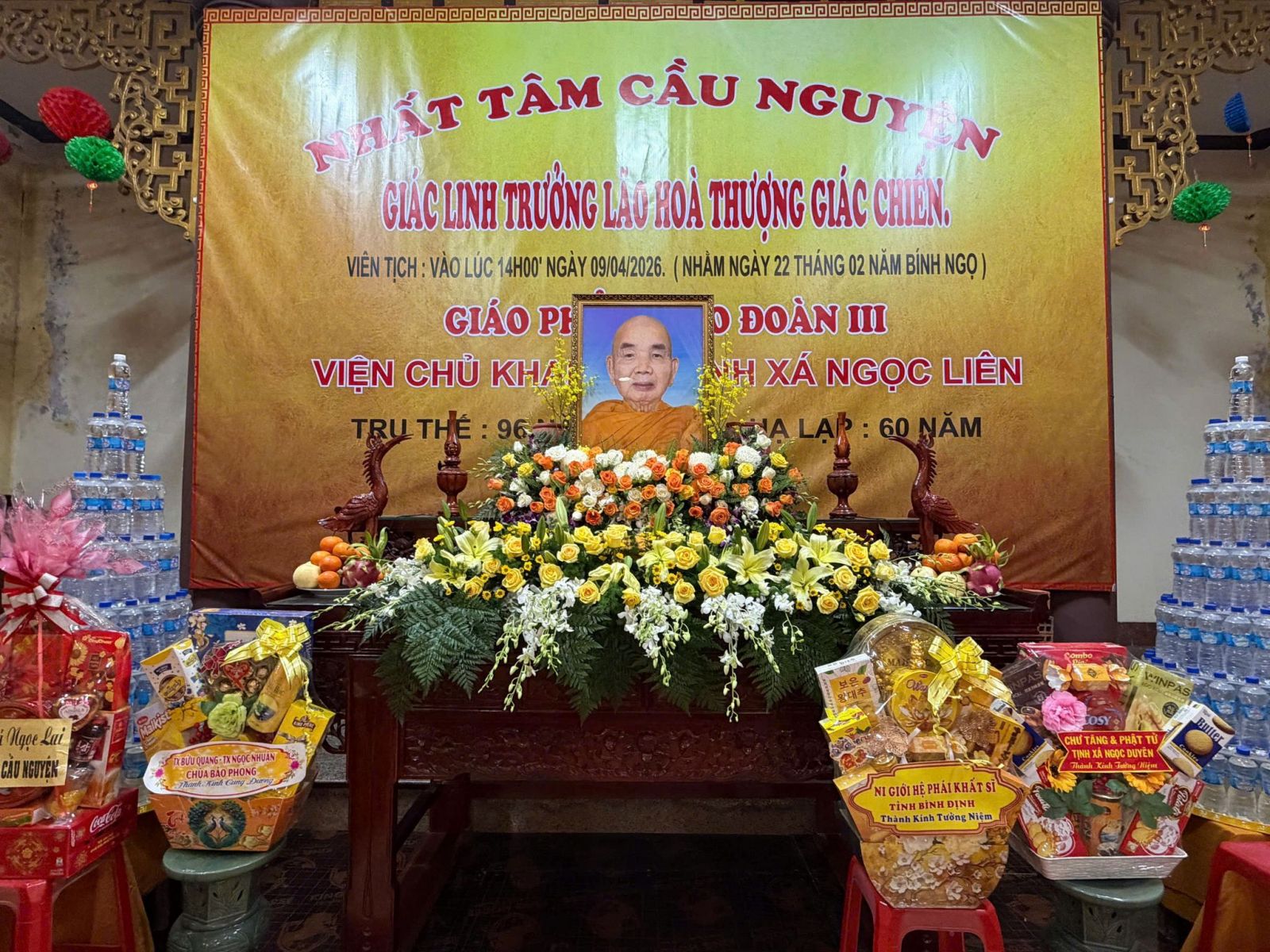 Trưởng lão Hòa thượng Giác Chiến - Giáo phẩm GĐ.III PGKS, Viện chủ khai sơn Tịnh xá Ngọc Liên (phường An Nhơn Đông, tỉnh Gia Lai), viên tịch ngày 09/04/2026 (22/02/Bính Ngọ).