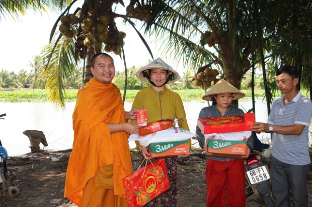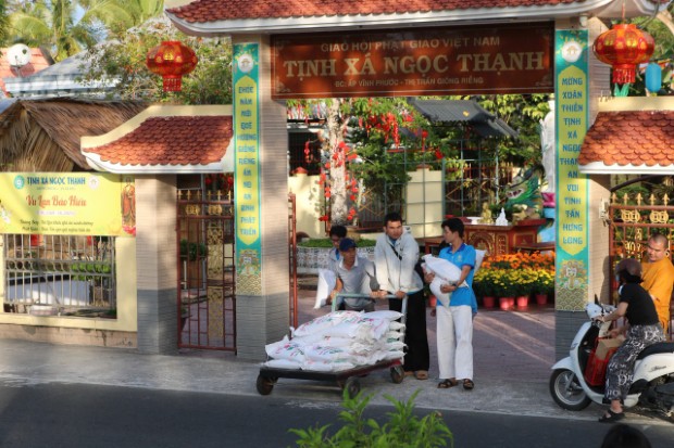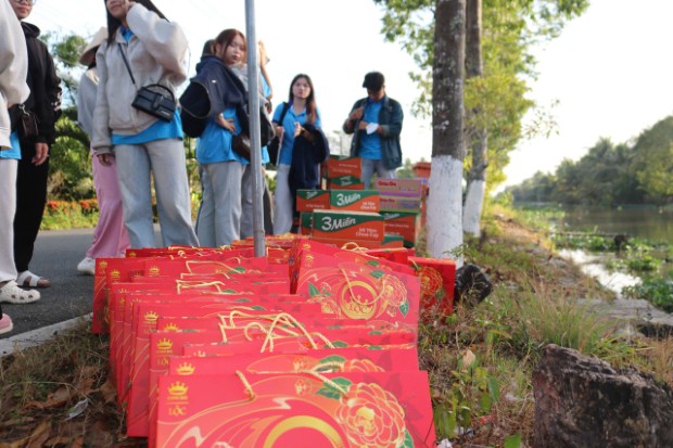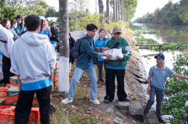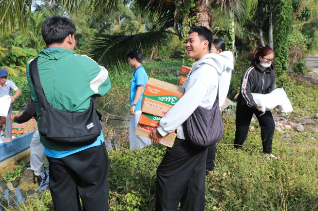 Theo đó, sáng ngày 12/02/2026 (25/12/Ất Tỵ), không khí tại bến sông ấp Cây Bàng, xã Long Thạnh rộn ràng hơn thường lệ. Đây là năm thứ 3 liên tiếp, chương trình "Xuân yêu thương" được Tuổi trẻ Tịnh xá Ngọc Thạnh tổ chức, trở thành điểm hẹn thường niên của những tấm lòng nhân ái hướng về cộng đồng trước thềm năm mới. Dưới sự hướng dẫn của ĐĐ. Giác Minh Tường – Trụ trì Tịnh xá Ngọc Thạnh, Trưởng BTC, hơn 50 bạn trẻ thành viên Tuổi trẻ Tịnh xá Ngọc Thạnh đã hăng hái vận chuyển những phần quà lên ghe máy, bắt đầu chuyến hành trình len lỏi vào các con rạch nhỏ thuộc ấp Cây Bàng và ấp Nguyễn Vũ. Đây là hai khu vực còn nhiều khó khăn, nơi bà con chủ yếu sống bám vào sông nước với nghề cắt lục bình, trồng khoai và làm thuê, đời sống còn nhiều bấp bênh.