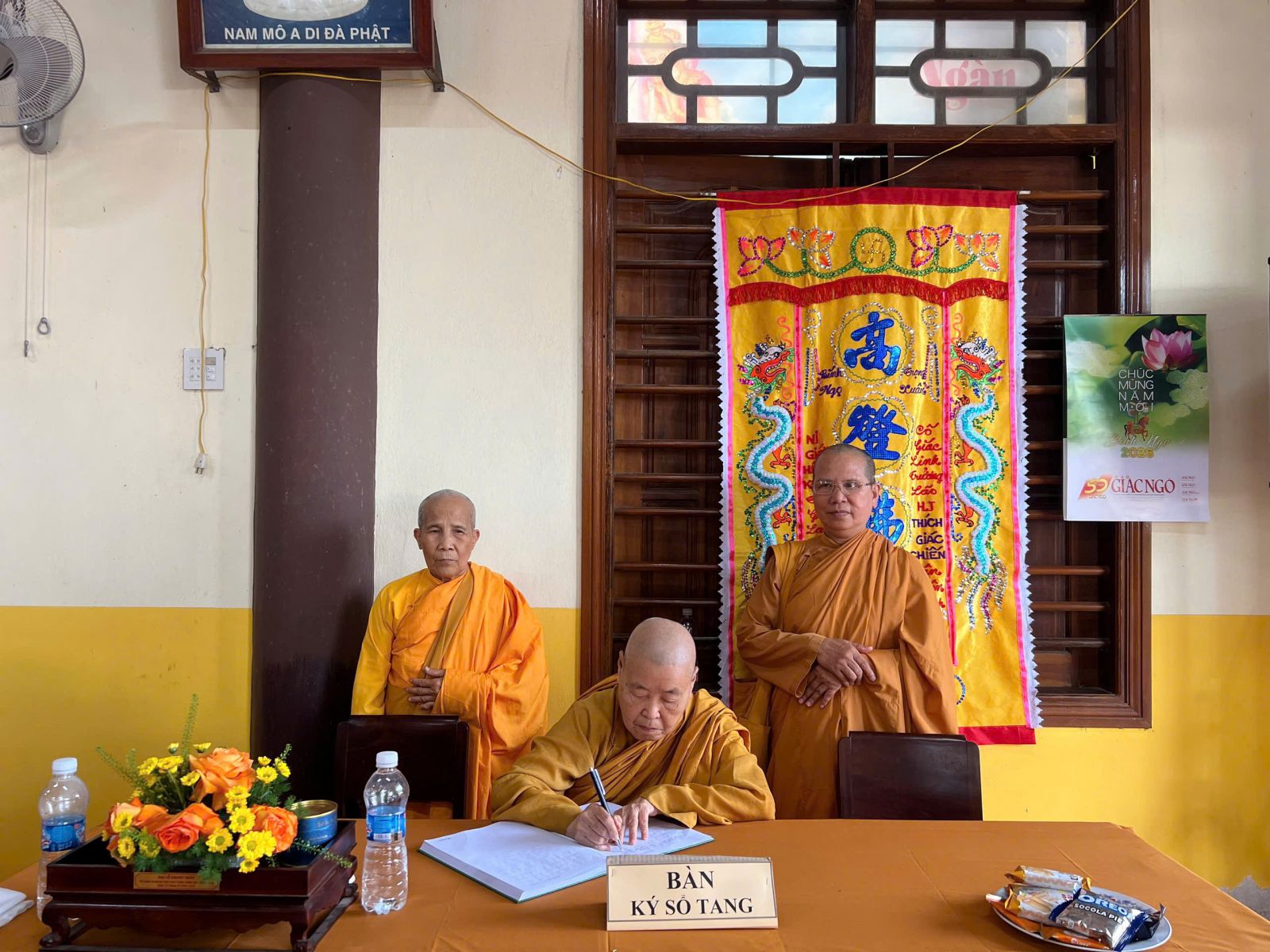 Được biết, chiều 12/04/2026 (25/02/Bính Ngọ), lúc 13h00, chư Tôn đức lãnh đạo GĐ.III PGKS đã thân lâm Giác linh đường, cử hành nghi thức truy điệu và phụng tống kim quan Trưởng lão Hoà thượng Giác Chiến đến đài hoá thân An Viên Gia Lai trà tỳ.