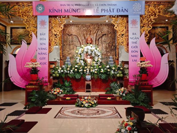Trong không khí hân hoan hòa cùng hàng triệu người con Phật trên khắp thế giới hướng về ngày đản sanh của Đức Thế Tôn, tối 12/5/2025 (15/4/Ất Tỵ), tại Tịnh xá Ngọc Chơn (thị xã Chơn Thành, tỉnh Bình Phước), Đại lễ Phật đản PL.2569 – DL.2025 đã được tổ chức trang nghiêm, thanh tịnh với sự tham dự của chư Tăng và hơn 200 Phật tử.