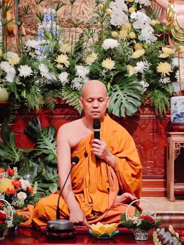 Tiếp nối chương trình, TT. Giác Nhuận đã giảng pháp với chủ đề “Ý nghĩa lễ tắm Phật”. Thượng tọa chia sẻ: "Lễ tắm Phật là một biểu tượng cao quý trong mùa Phật đản. Chúng ta không chỉ tắm cho tôn tượng Thái tử Tất-đạt-đa mà còn là cơ hội để mỗi người tự ‘tắm rửa’ thân tâm mình, gột sạch những cấu uế của tham - sân - si, trở về với bản tâm thanh tịnh, sáng suốt, noi theo ánh đạo vàng Đức Phật đã soi rọi và tiếp bước Ngài trên đạo lộ giải thoát".