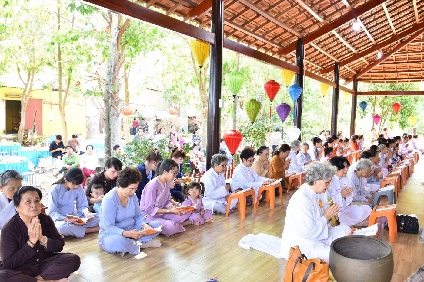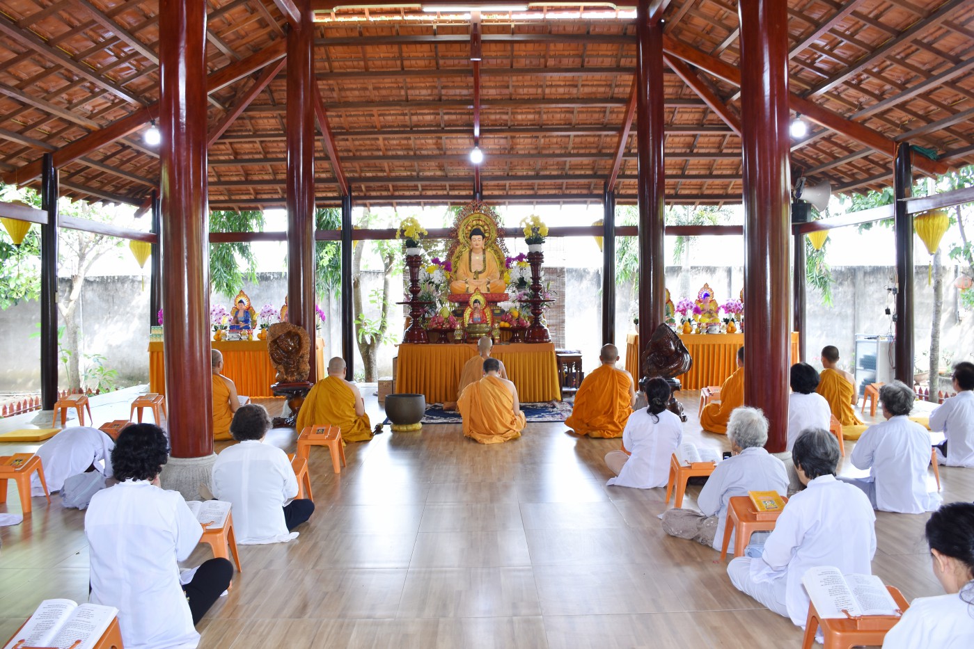 Buổi sáng, Sư Minh Tiến, Minh Cường đã hướng dẫn Phật tử đọc thời kinh cầu an. Sau thời kinh được sự chỉ dạy của Thượng tọa Giác Nhuận, Sư Minh Đạo đã chia sẻ Chơn Lý số 51 với hàng Phật tử. Sư nhấn mạnh chúng ta không vì sự thờ phượng mà mê tín, dị đoan làm mất đi ý nghĩa tinh thần của đạo Phật.