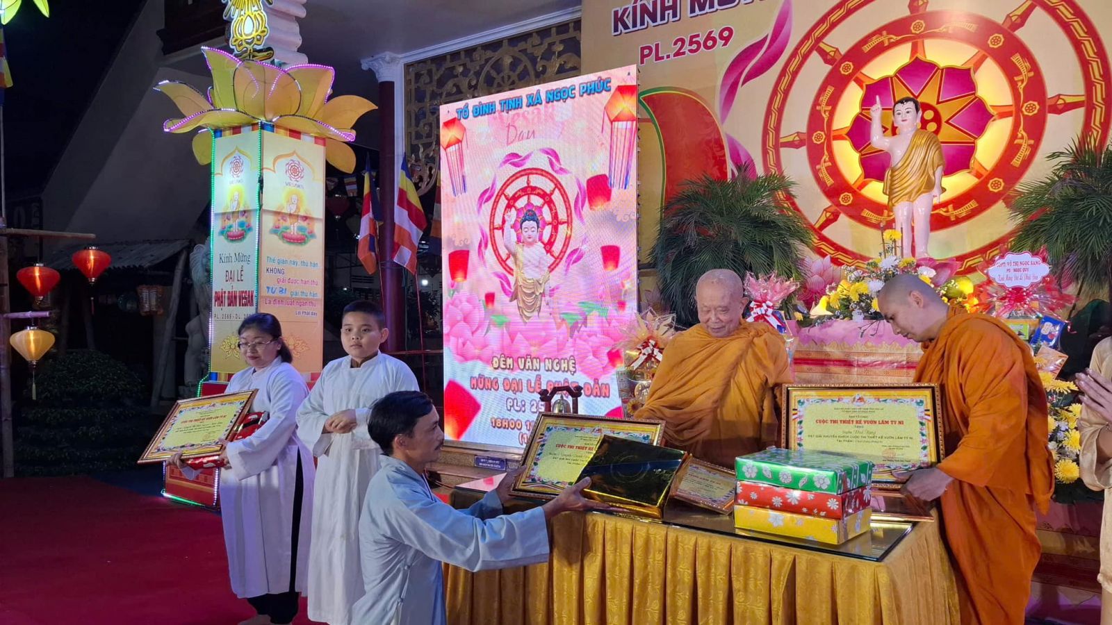 Đêm hội cũng là dịp thắp sáng tinh thần cầu nguyện quốc thái dân an, thế giới hòa bình, đồng thời tạo không gian hoan hỷ cho hàng Phật tử trong mùa Đại lễ Phật đản – Vesak 2025. Dịp này, Trưởng lão HT. Giác Thành cũng đã trao bằng khen và phần thưởng đến các Phật tử đạt giải trong cuộc thi thiết kế vườn Lâm-tỳ-ni – một hoạt động sáng tạo, gợi nhắc hình ảnh Đức Phật đản sanh, giúp người học Phật nuôi dưỡng niềm kính tin Tam bảo và phát triển sự tu học từ tâm.