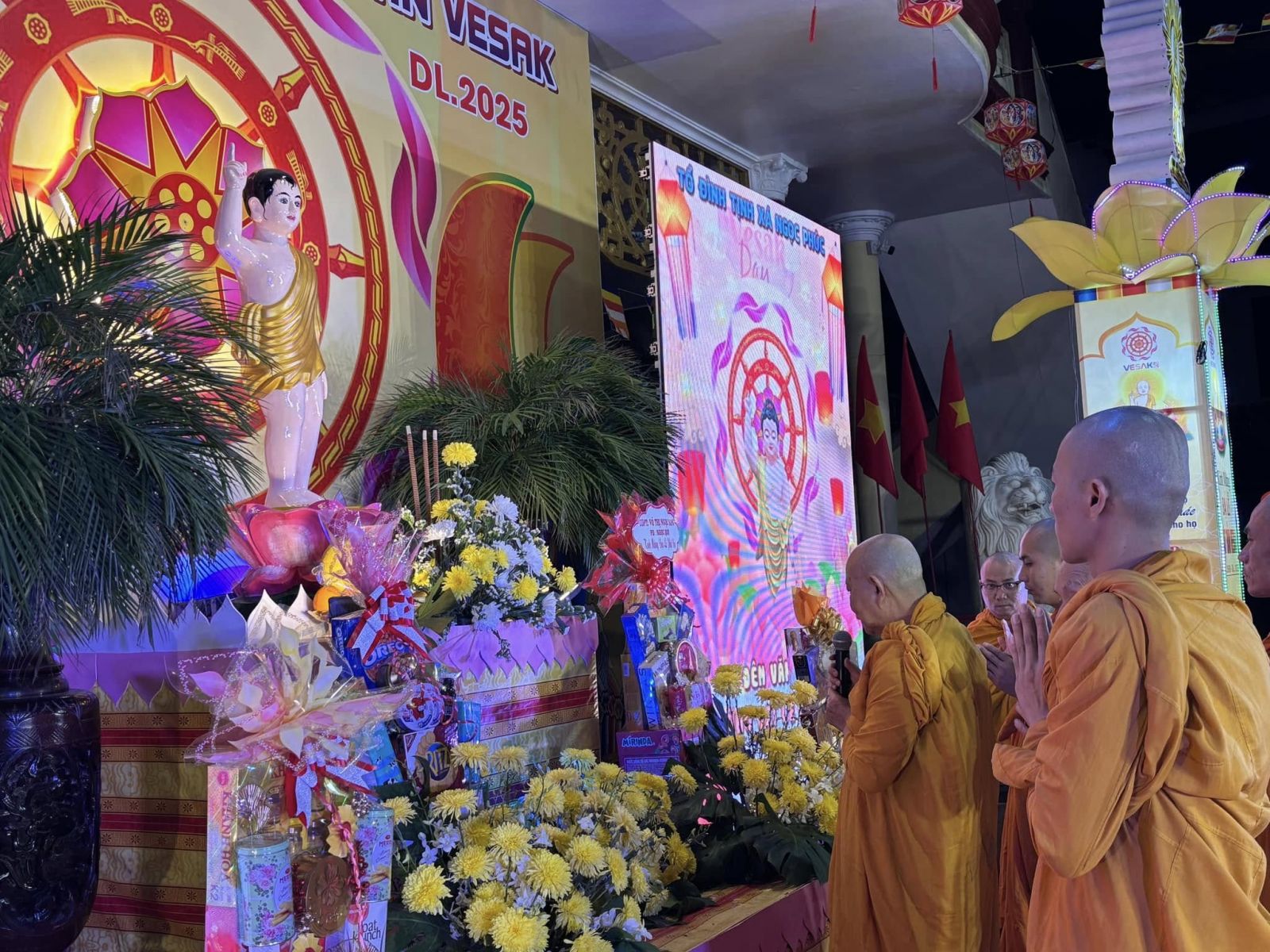 Theo đó, tối ngày 5/5/2025, đông đảo chư Tăng và Phật tử đã vân tập về Tổ đình Tịnh xá Ngọc Phúc tham dự Đại lễ Phật đản PL.2569. Trong không khí trang nghiêm, toàn thể hội chúng đã thành kính dâng hương, tụng kinh kính mừng ngày đản sanh của Đức Phật Thích Ca Mâu Ni, đồng thời cử hành nghi thức mộc dục, một nghi lễ thiêng liêng tượng trưng cho sự gột rửa phiền não, hướng tâm đến thanh tịnh và tỉnh thức.