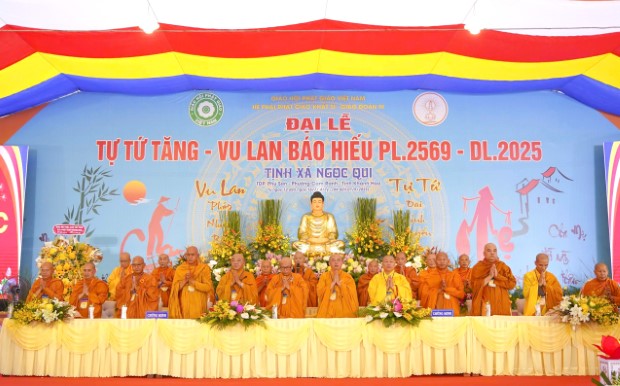 Khép lại ba tháng hạ an cư, đồng thời hòa trong không khí thiêng liêng của mùa hiếu hạnh, sáng 5/9/2025 (14/7/Ất Tỵ), tại Tịnh xá Ngọc Qui (phường Cam Ranh, tỉnh Khánh Hòa), GĐ.III PGKS đã long trọng khai mạc Đại lễ Tự tứ Tăng và Vu lan báo hiếu PL.2569.
