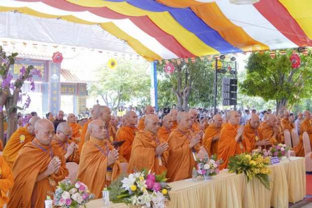 Buổi lễ có sự quang lâm của HT. Thích Quảng Thiện và HT. Thích Nguyên Quang – đồng Thành viên HĐCM, Chứng minh BTS GHPGVN tỉnh Khánh Hòa; HT. Thích Hạnh Thể – Ủy viên HĐTS, Trưởng BTS GHPGVN tỉnh; HT. Thích Đức Thành – Phó BTS kiêm Trưởng ban Nghi lễ GHPGVN tỉnh; HT. Thích Chúc Long – Giáo phẩm Phật giáo Khánh Hòa; TT. Thích Hạnh Huệ – Phó Trưởng ban Thường trực BTS GHPGVN tỉnh; TT. Thích Thiện Phước – Ủy viên HĐTS, Phó ban kiêm Chánh Thư ký BTS GHPGVN tỉnh Khánh Hòa; cùng chư Tôn đức thành viên Ban Thường trực BTS GHPGVN tỉnh Khánh Hòa đồng tham dự.