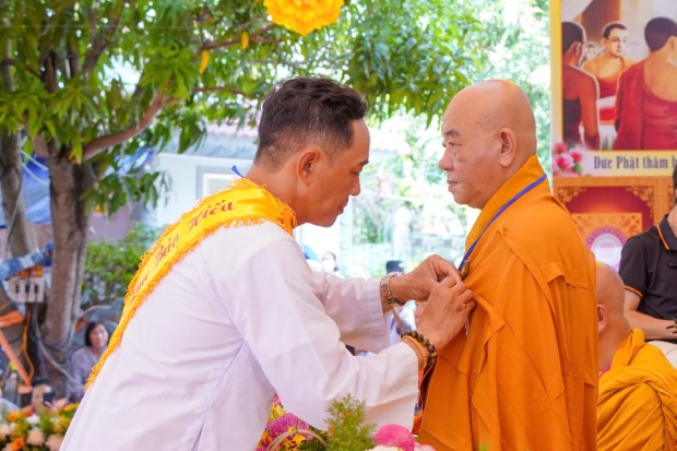 Những đóa hoa hiếu hạnh cũng được trang nghiêm cài lên huỳnh y của chư Tôn đức và áo của đại biểu chính quyền, như lời nhắc nhở về tình mẹ cha như trời biển, ân nghĩa muôn đời chẳng thể quên.