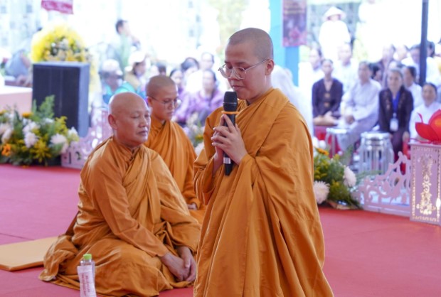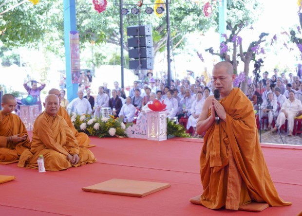 Trong bầu không khí trang nghiêm, từng lời dạy trong Bộ Chơn lý, di sản tâm linh bất diệt của Đức Tổ sư, được xướng tụng một cách mạch lạc, trầm hùng. Đây không chỉ là sự lặp lại âm thanh, mà là sự hòa nhịp giữa tâm và pháp, giúp người nghe cảm nhận rõ tông chỉ “Nối truyền Thích Ca Chánh pháp”, thấy được bóng dáng và hạnh nguyện của bậc khai sáng Hệ phái Phật giáo Khất sĩ.