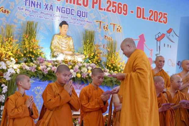 Thuộc khuôn khổ chương trình Đại lễ Tự tứ Tăng và Vu lan Báo hiếu PL.2569, nhằm tưởng niệm công đức của Đức Tổ sư Minh Đăng Quang, đồng thời khích lệ tinh thần học tập, nghiên cứu giáo pháp nơi Tăng Ni và Phật tử, chư Tôn đức lãnh đạo Giáo đoàn đã tiếp tục chỉ đạo tổ chức thời khóa trùng tụng Chơn lý và chương trình hội thi giáo lý “Tỏa Ánh Từ Quang” trong chiều ngày 6/9/2025 (15/7 Ất Tỵ), tại Tịnh xá Ngọc Qui (phường Cam Ranh, tỉnh Khánh Hòa).