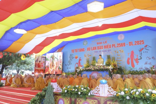 Ban pháp từ tại buổi lễ, HT. Giác Hùng đã nhắc nhở đại chúng, sau ba tháng an cư, chư Tăng Ni thúc liễm thân tâm, tăng trưởng giới hạnh, công đức ấy chính là năng lượng thanh tịnh để hồi hướng đến cha mẹ nhiều đời nhiều kiếp. Đây cũng chính là ý nghĩa thiêng liêng của ngày Tự tứ và mùa Vu lan báo hiếu.