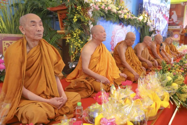 Buổi lễ được sự chứng minh của chư Tôn giáo phẩm GĐ.III PGKS: HT. Giác Hùng – Phó Trưởng ban Ban Thường trực Hệ phái PGKS, Đệ nhất Chứng minh kiêm Tri sự Trưởng Giáo đoàn; HT. Giác Phùng – Giáo phẩm Hệ phái, Tri sự Phó Thường trực Giáo đoàn; HT. Giác Trong – Giáo Phẩm Hệ phái, Tri sự Phó kiêm Trưởng ban Hoằng pháp Giáo đoàn; HT. Giác Trí – Chứng minh Ban Trị sự GHPGVN huyện Tuy Phước, Giáo phẩm Hệ phái, Tri sự Phó kiêm Trưởng ban Giáo dục Giáo đoàn; HT. Giác Minh – Giáo phẩm Hệ phái, Tri sự Phó kiêm Trưởng ban Nghi lễ, Phó ban Tăng sự Giáo đoàn; HT. Giác Thành – Chứng minh Ban Trị sự GHPGVN tỉnh Gia Lai, Giáo phẩm Hệ phái, Tri sự Phó kiêm Trưởng ban Tăng sự Giáo đoàn.
