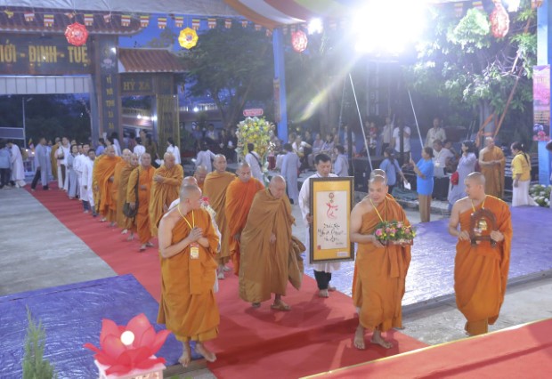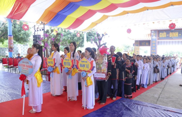 Ban Tổ chức đã thành tâm cung đón chư Tôn đức Trưởng lão Hòa thượng chứng minh và lãnh đạo Giáo đoàn: HT. Giác Hùng – Đệ nhất Chứng minh, kiêm Tri sự Trưởng GĐ.III PGKS; chư Tôn đức Hòa thượng trong Ban Lãnh đạo Giáo đoàn: HT. Giác Phùng – Tri sự Phó Thường trực GĐ.III PGKS, trụ trì Tổ đình Nam Trung và Tịnh xá Ngọc Tòng (tỉnh Khánh Hòa); HT. Giác Trong – Tri sự Phó kiêm Trưởng ban Hoằng pháp GĐ.III PGKS, trụ trì Tịnh xá Ngọc Phước (tỉnh Khánh Hòa); HT. Giác Trí – Tri sự Phó kiêm Trưởng ban Giáo dục Tăng Ni GĐ.III PGKS, trụ trì Tịnh xá Ngọc Sơn (tỉnh Gia Lai); HT. Giác Minh – Tri sự phó kiêm Phó ban Tăng sự GĐ.III PGKS, trụ trì Tịnh xá Ngọc Đà (Lâm Đồng); HT. Giác Thành – Chứng minh Ban Trị sự GHPGVN tỉnh Gia Lai, Tri sự phó kiêm Trưởng ban Tăng sự GĐ.III PGKS, trụ trì Tịnh xá Ngọc Phúc (Gia Lai); HT. Giác Tiến – Ủy viên HĐTS, Chứng minh Ban Trị sự GHPGVN tỉnh Đắk Lắk, Tri sự phó GĐ.III PGKS, trụ trì Tịnh xá Ngọc Quang (Đắk Lắk).