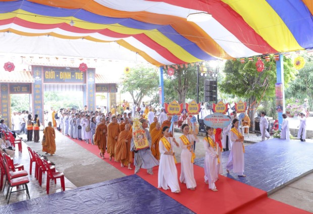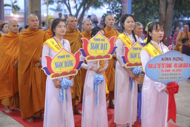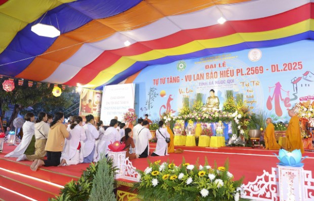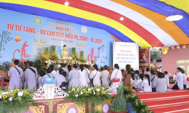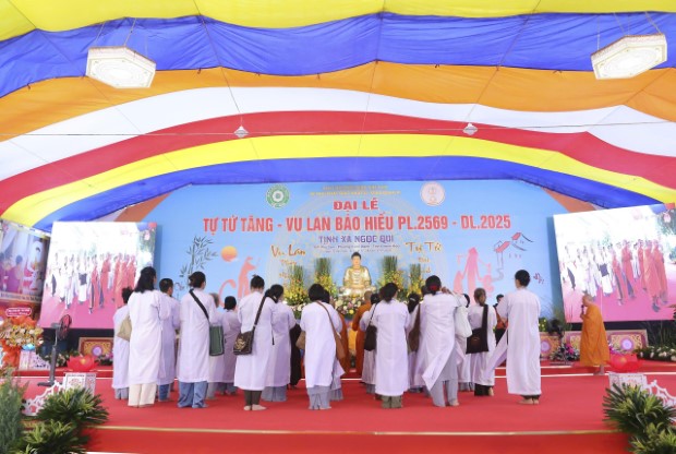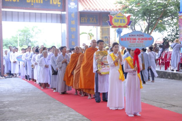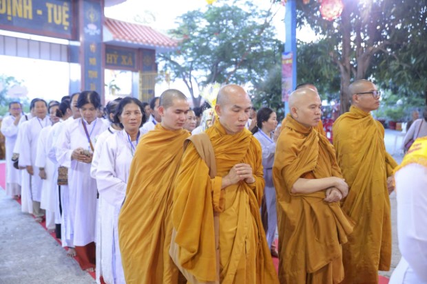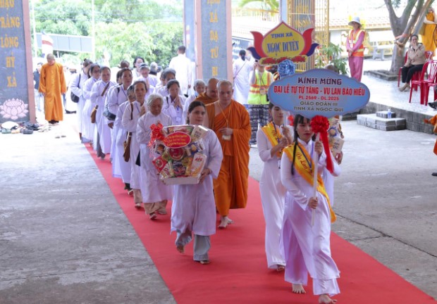 Chiều 4/9/2025 (13/7/Ất Tỵ), Ban Tổ chức Đại lễ Tự Tứ Tăng và Vu Lan Báo Hiếu PL.2569 đã thành kính đón tiếp chư Tôn đức Trưởng lão Hòa thượng lãnh đạo GĐ.III PGKS và chư tôn Thượng tọa, Đại đức Tăng trụ trì, trụ xứ các miền Tịnh xá, cùng đông đảo nam nữ Phật tử từ khắp các tỉnh thành trở về đảnh lễ và tham dự đại lễ, tại Tịnh xá Ngọc Qui (phường Cam Ranh, tỉnh Khánh Hòa).
