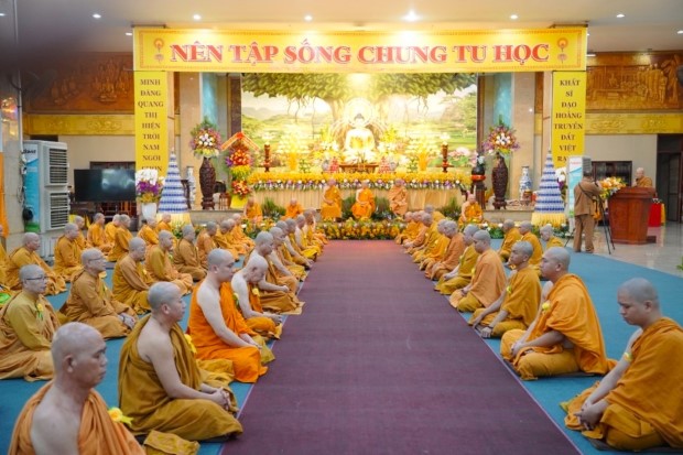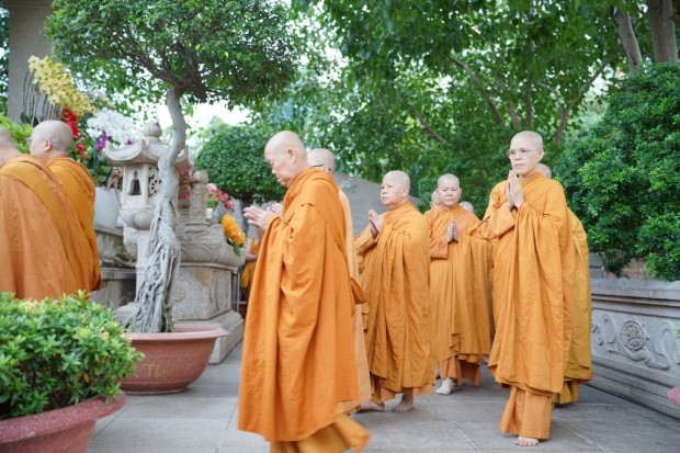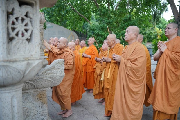 Được biết trước đó, dưới sự chứng minh của nhị Trưởng lão HT. Giác Ngộ và HT. Giác Toàn, chư Tôn đức Tăng Ni Giáo đoàn đã trang nghiêm nghi thức nhiễu tháp dâng hương tưởng niệm chư Tổ Thầy của Giáo đoàn.