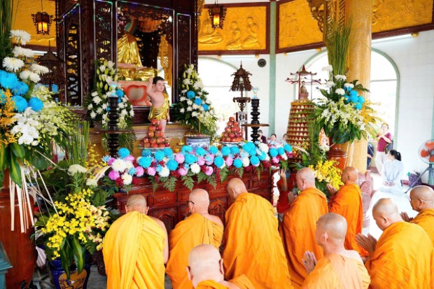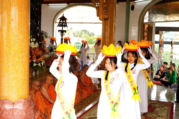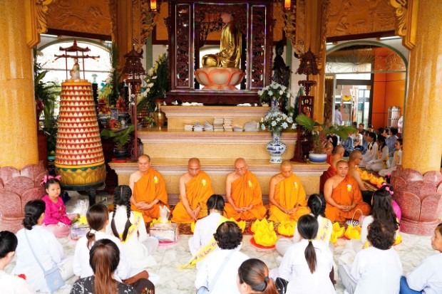 Tiếp đó, sáng 6/9, Đại lễ Vu lan báo hiếu PL.2569 đã chính thức diễn ra dưới sự chứng minh của Trưởng lão HT. Giác Tùng – Thành viên HĐCM GHPGVN, Tăng trưởng GĐ.V PGKS; HT. Giác Pháp – Ủy viên HĐTS, Phó Trưởng ban Nghi lễ TƯGH, Phó Thường trực Ban Thường trực Giáo phẩm Hệ phái, Phó ban Trị sự GHPGVN TP.HCM, Tri sự trưởng GĐ.V PGKS, Trụ trì Tịnh xá Trung Tâm (phường Phú lâm, TP.HCM); HT. Giác Nhân – Chứng minh Ban trị sự GHPGVN tỉnh Đồng Tháp, Trị sự Phó GĐ.V PGKS; cùng sự quang lâm của chư Tôn đức Tăng Ni trực thuộc Giáo đoàn và đông đảo Phật tử đồng về tham dự.
