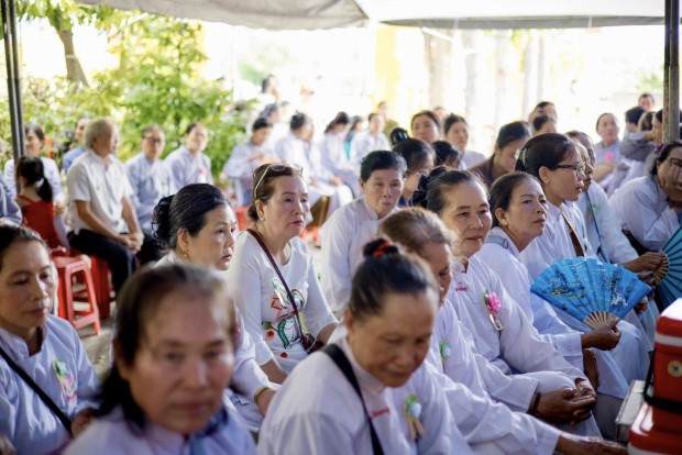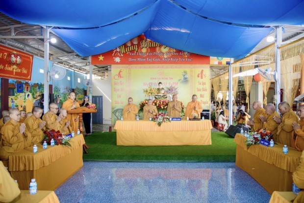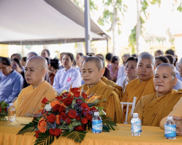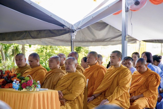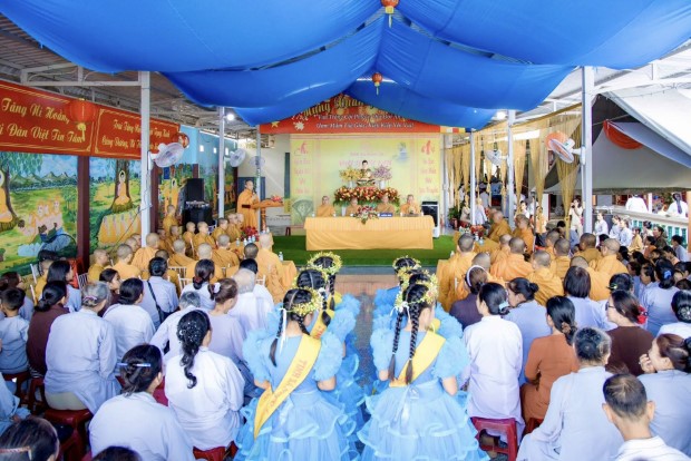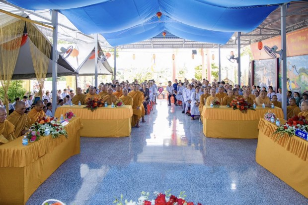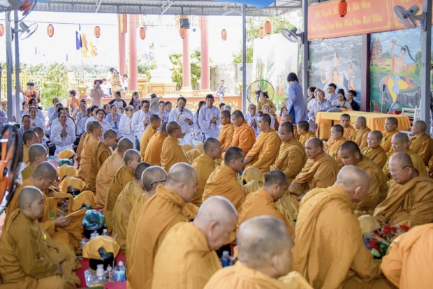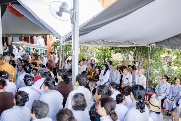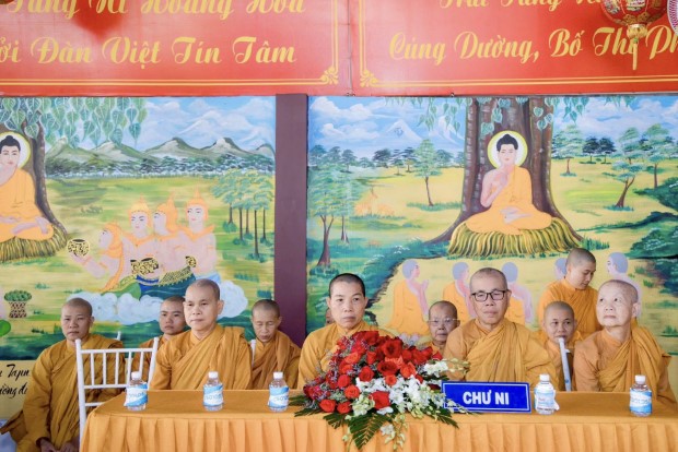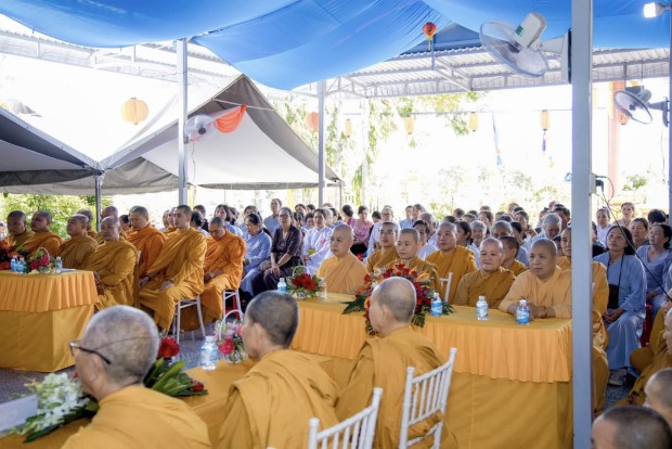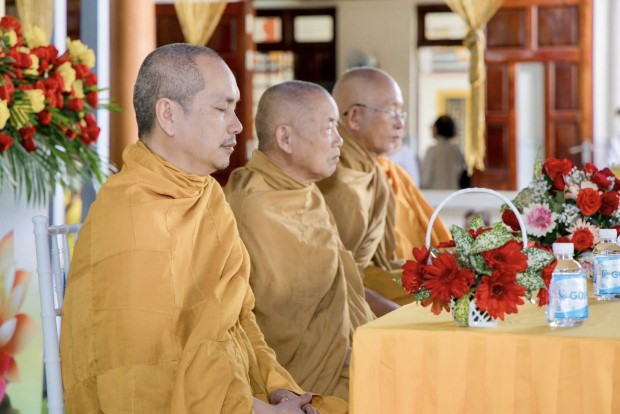 Sau phần lễ chính, chư Tôn đức đã cử hành nghi thức cúng dường trai Tăng. TT. Giác Nhường – Phó Thư ký kiêm Trưởng ban Thông tin Truyền thông PGKS, đã đãi lao nhị vị Trưởng lão Hòa thượng chứng minh và đại chúng Tăng Ni, cầu nguyện Tam bảo gia hộ cho hàng Phật tử đạo tràng thân tâm an lạc, phước huệ song tu, mọi sở cầu thiện lành đều viên mãn.