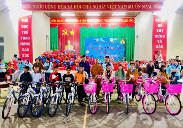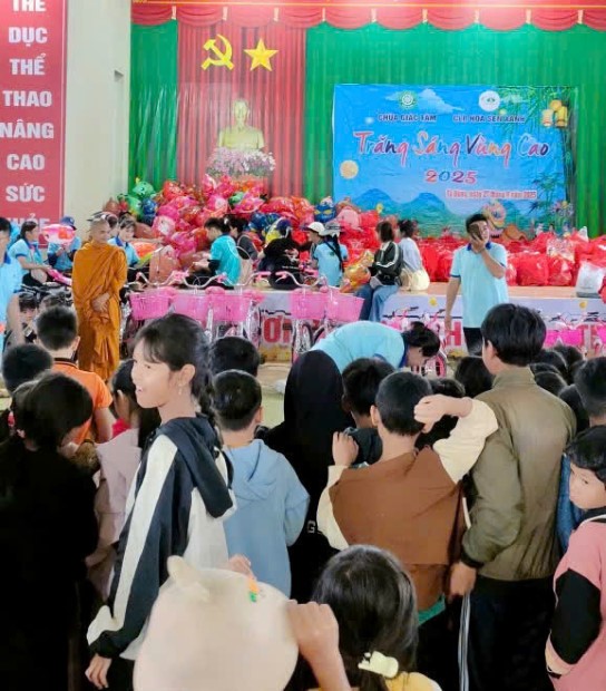 Những món quà giản dị nhưng chứa đựng cả tấm lòng của chư Tôn đức và các Phật tử, mạnh thường quân, như ngọn đèn nhỏ thắp sáng niềm tin cho tuổi thơ nơi vùng cao nguyên. Đại diện Tịnh xá Ngọc Đạt, Sư Giác Minh Cần, cùng chư Tôn đức và các thành viên CLB Hoa Sen Xanh, đã trực tiếp gửi trao từng phần quà, từng lời động viên đến các em.