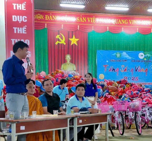 Đồng thời, Ban Tổ chức đã bày tỏ lời tri ân sâu sắc đến sự hỗ trợ tận tâm của lãnh đạo địa phương, Ban Giám hiệu nhà trường, đặc biệt là công đức phát tâm của ĐĐ. Thích Kiến Tâm – Trụ trì chùa Giác Tâm và CLB Hoa Sen Xanh, những người đã tài trợ toàn bộ chương trình. Chính sự sẻ chia này đã thắp sáng niềm hy vọng, mang đến cho các em nhỏ một mùa Trung thu trọn vẹn, đong đầy yêu thương.