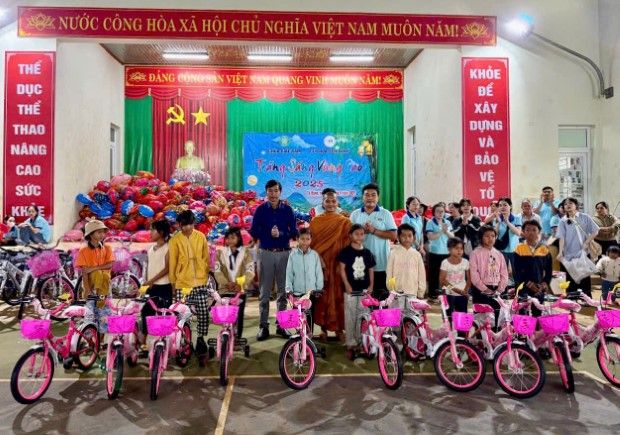 Đặc biệt, Ban Tổ chức đã trao tặng hơn 500 phần quà, mỗi phần trị giá 70.000đ, gồm: bánh trung thu, bim bim, kẹo, sữa, xúc xích, bong bóng hình thú, tập viết và mền… Ngoài ra, để tiếp thêm nghị lực học tập, chương trình còn trao tặng 20 chiếc xe đạp và 20 suất học bổng (mỗi suất trị giá 500.000đ) đến những em học sinh vượt khó, hiếu học.