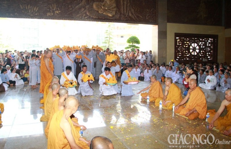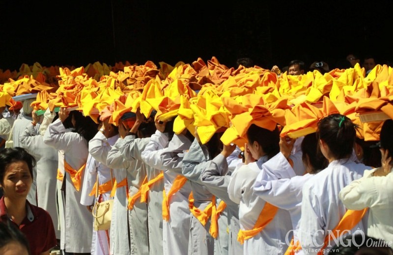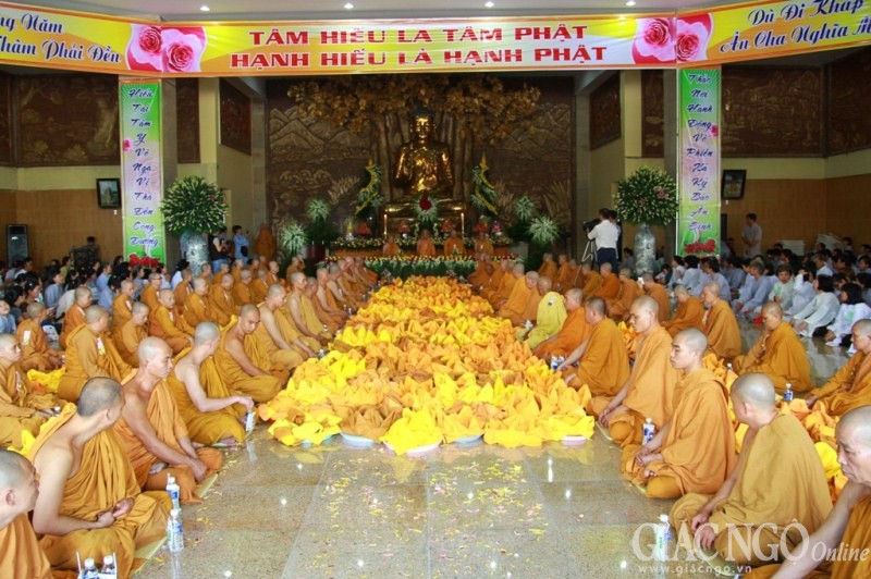 Sáng qua, 10-8 (15-7-Giáp Ngọ), tại Pháp viện Minh Đăng Quang (Q.2, TP.HCM), lần đầu tiên lễ dâng y nhân mùa Vu Lan - Báo Hiếu lên hơn 200 chư Tôn đức Tăng Ni Giáo đoàn IV đã diễn ra long trọng.