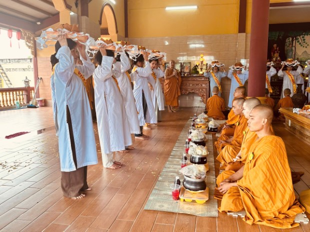 Trong không khí trang nghiêm và thắm tình hiếu đạo, đại chúng đã cùng nhau sống lại truyền thống ngàn đời của lễ Vu lan, tưởng nhớ công ơn sinh thành dưỡng dục của cha mẹ. Theo đó, dưới sự chủ trì của chư Tôn đức, toàn thể hội chúng đã đồng tụng kinh Vu lan, tưởng nhớ đến tấm gương hiếu hạnh của Tôn giả Mục-Kiền-Liên. Các Phật tử trong đạo tràng cũng thành kính dâng Pháp y Ca-sa, phẩm vật và tứ sự cúng dường lên chư Tôn đức Tăng sau ba tháng an cư kiết hạ.