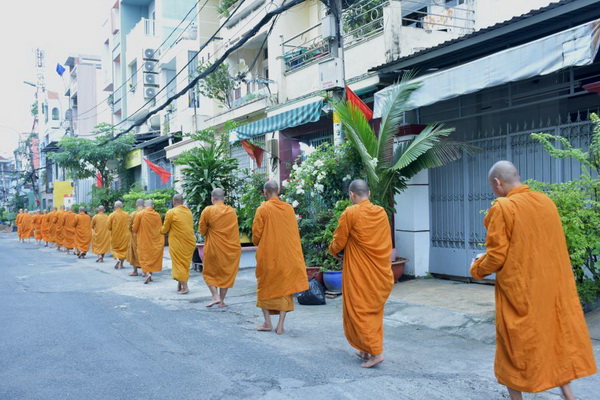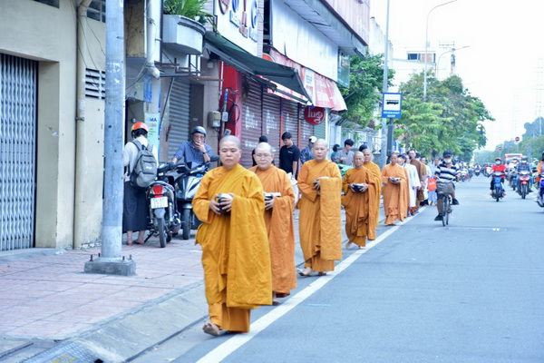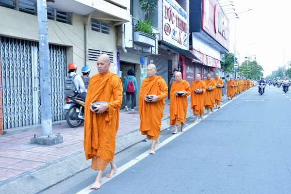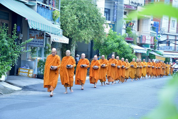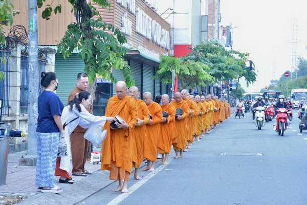 Dịp này, hơn 30 chư Tôn đức Tăng Ni đã trang nghiêm trì bình khất thực trên tuyến đường Kinh Dương Vương. Hình ảnh đoàn Tăng áo vàng với từng bước chân chậm rãi, an nhiên giữa dòng đời nhộn nhịp đã khơi dậy niềm xúc động trong lòng Phật tử. Những phẩm vật được dâng cúng không chỉ là tấm lòng thành, mà còn là phước báu gieo trồng, giúp người cúng dường kết duyên lành với Tam bảo.