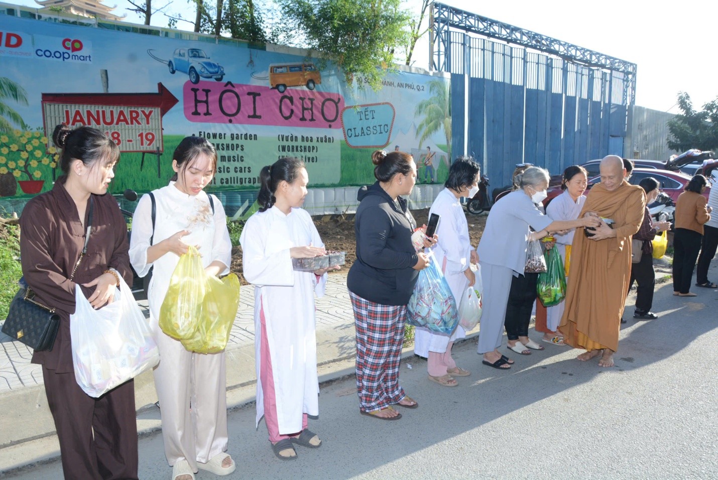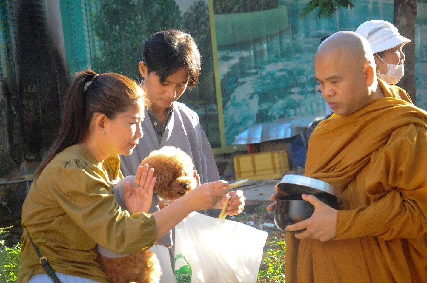 Phật tử hai bên đường chắp tay cung kính, từng vị dâng lên những phẩm vật thanh tịnh với lòng thành kính. Mỗi hạt cơm, mỗi món vật thực dâng lên không chỉ là cúng dường mà còn là một sự gieo trồng phước lành. Đức Tổ sư từng dạy rằng: "Có đi xin mới có từ bi hỷ xả, trí huệ thông minh, cõi lòng mát dịu, rộng mở bao la, lặng yên sạch sẽ".