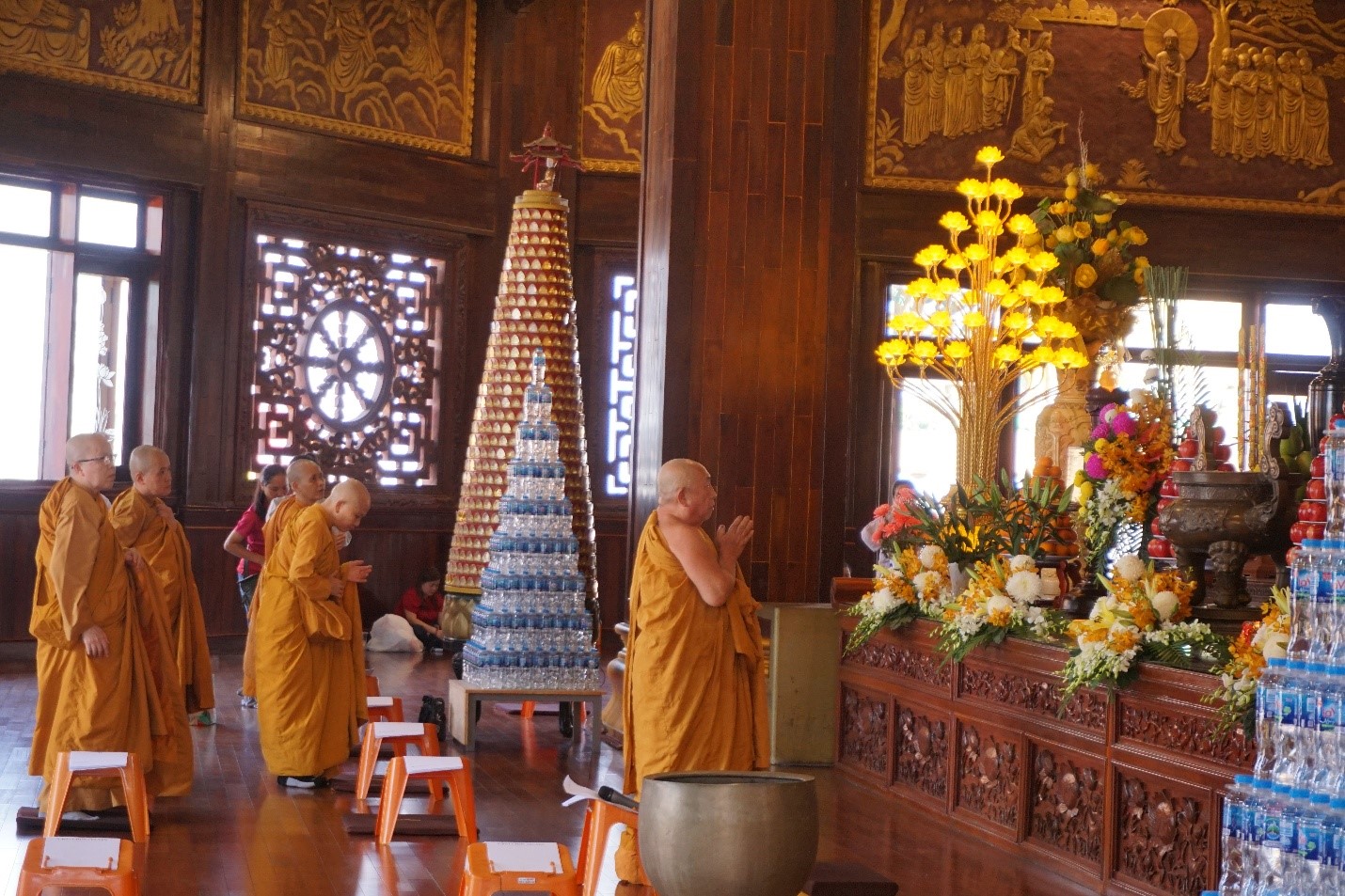 Dưới sự hướng dẫn của chư tôn đức, từng câu kinh sám hối vang lên trong không gian trang nghiêm, giúp đại chúng thanh tịnh thân tâm, phát nguyện sửa đổi và tinh tấn hơn trên con đường tu học.