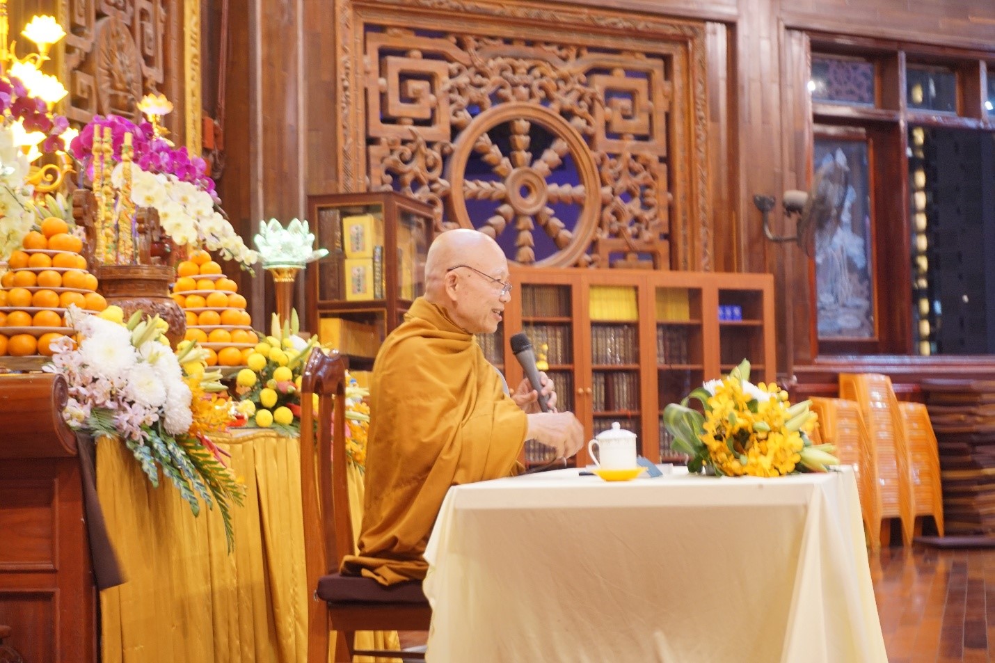 Bên cạnh đó, Hòa thượng nhấn mạnh về hạnh tu Khất sĩ – con đường phạm hạnh mà Đức Tổ sư đã khai mở. Ngài giảng giải về tinh thần sống tri túc, không bám víu vào vật chất, lấy khất thực làm phương tiện tu tập để nuôi thân, đồng thời cũng là cách gieo duyên cho chúng sanh.