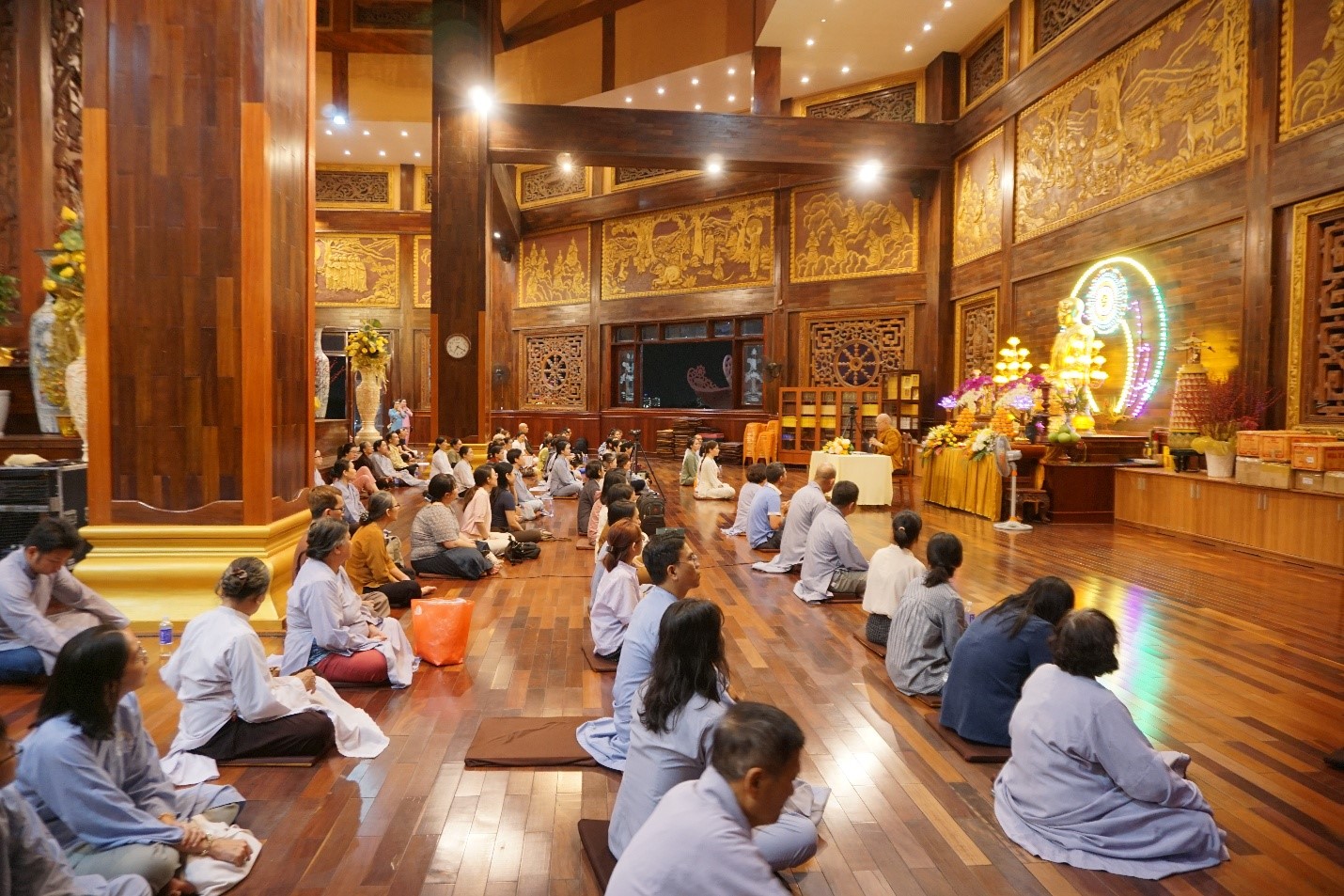 Trong khi các Phật tử đang nghe thuyết pháp, chư Tăng Ni tụng giới tại Thiền đường và sinh hoạt Tăng sự, cùng nhau ôn lại giới luật, nhắc nhở bản thân giữ gìn phạm hạnh thanh tịnh