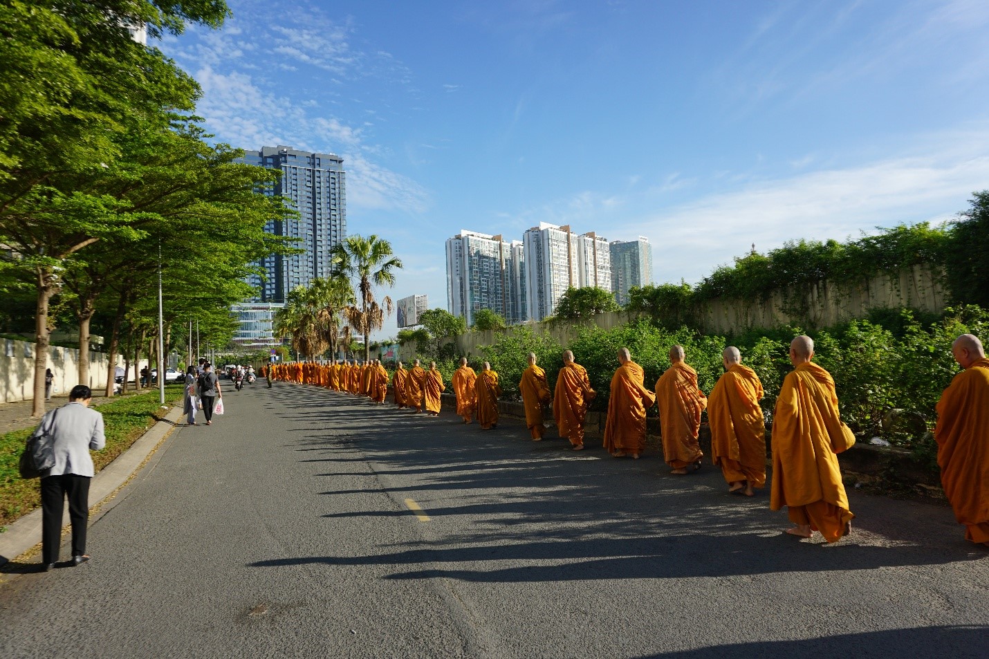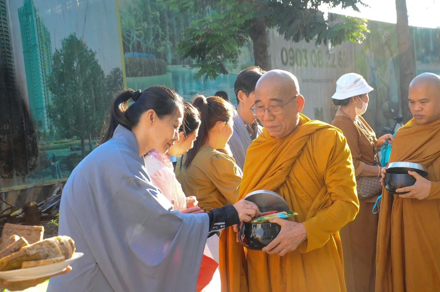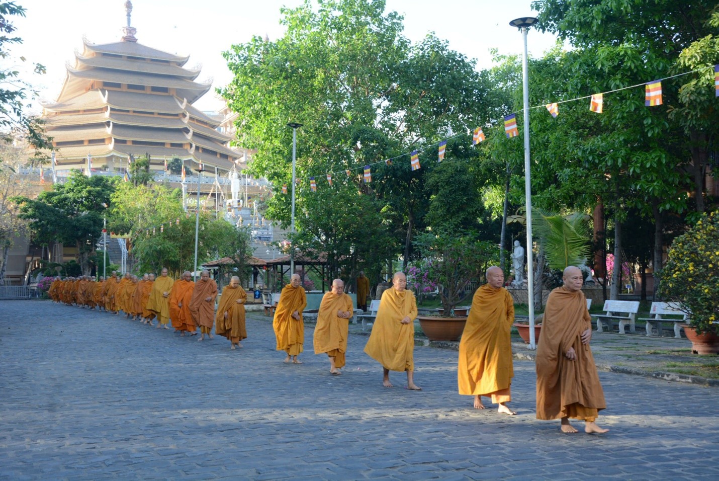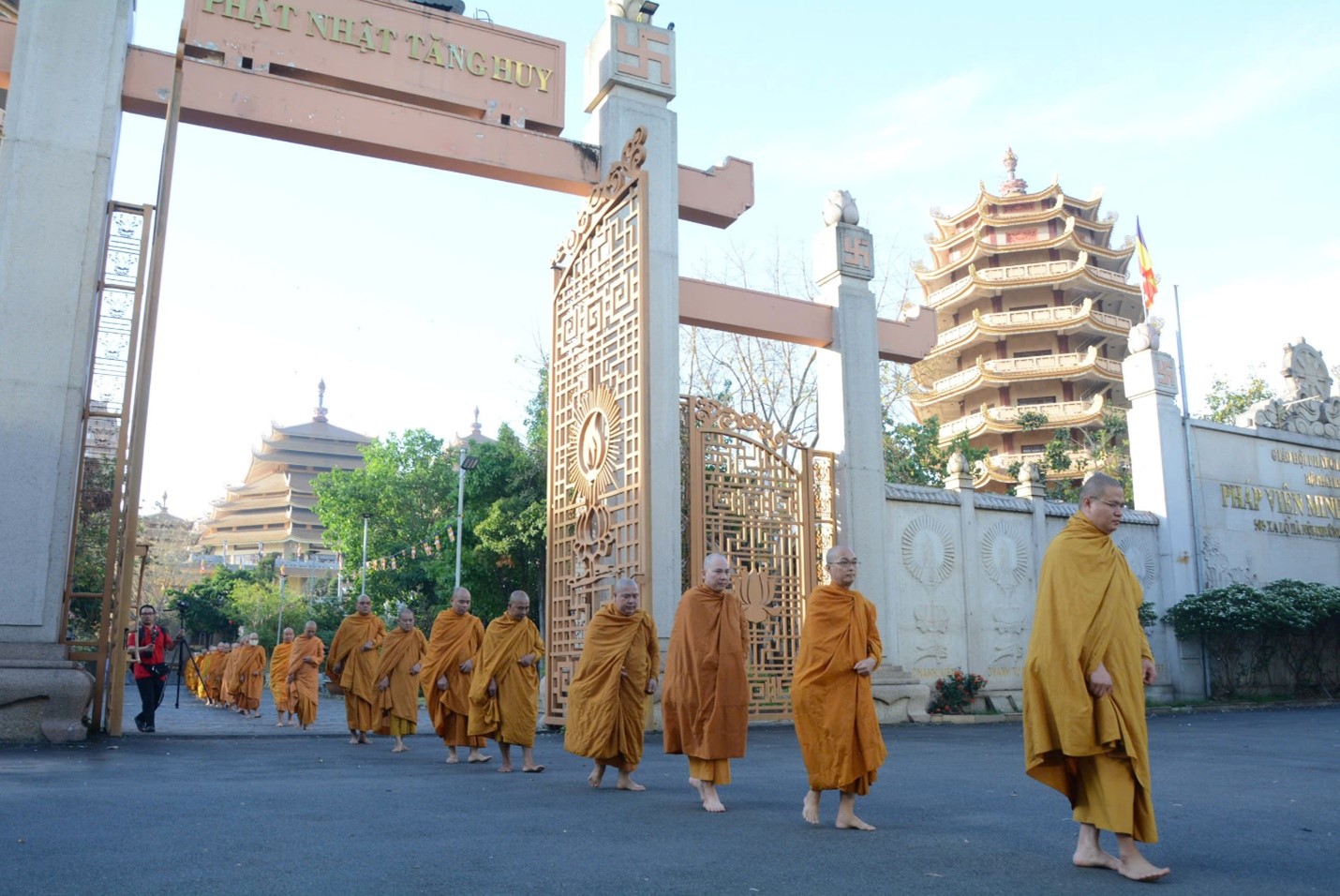 Sau lễ dâng hương, từ cổng Pháp viện Minh Đăng Quang, hàng dài chư Tăng Ni trong sắc y vàng rực rỡ trang nghiêm xếp hàng, từng bước trang nghiêm, thanh tịnh trong nghi thức trì bình khất thực. Đây là một hình ảnh thiêng liêng, tái hiện lại con đường mà Đức Phật và chư Thánh Tăng đã đi qua, thể hiện tinh thần "sống xin để học đạo", buông xả ngã chấp và tri túc trong đời sống phạm hạnh.