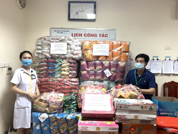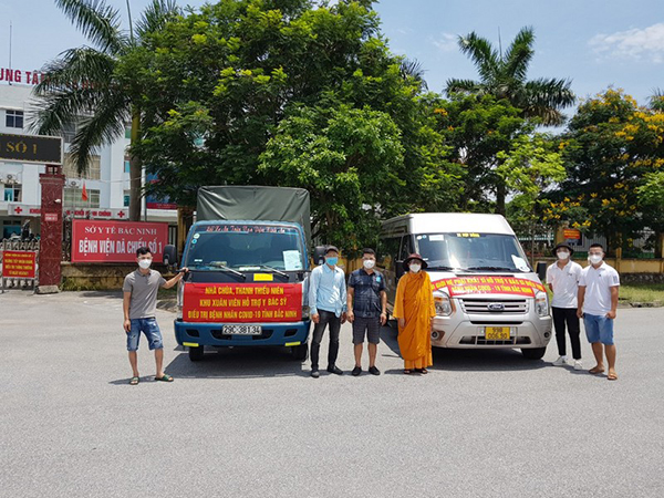 Từ ngày 27/5/2021 đến ngày 01/6/2021, Sư cô Vũ Liên cùng các tình nguyện viên đã chia sẻ những phần quà bao gồm: Sữa Ensure 80 lốc, nước yến hủ 30 thùng, mì ly ăn liền 300 thùng, các loại nước giải nhiệt: Chanh muối, trà chanh, Porica Sweat 100 thùng, đến Bệnh viện Đa khoa Bắc Ninh, Bệnh viện Dã chiến số 1 huyện Tiên Du, Bệnh viện Dã chiến số 2, Bệnh viện Dã chiến số 4, Trung tâm y tế huyện Gia Bình, Bệnh viện Sản nhi Bắc Ninh. Đặc biệt có những phần sữa Vinamilk, bánh kẹo phát cho trẻ em bị cách ly tại Bệnh viện Sản nhi Bắc Ninh nhân ngày lễ quốc tế thiếu nhi 1/6. Với tổng trị giá hơn 140 triệu đồng.