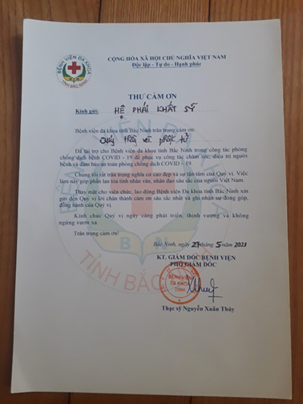 Ni trưởng Quý Liên, Sư cô Vũ Liên thay mặt cho đội ngũ y bác sĩ và các bệnh nhân tâm dịch tỉnh Bắc Ninh thành kính cảm niệm ân đức và tri ân sâu sắc đến quý Ni trưởng Giáo phẩm lãnh đạo Ni giới Hệ phái Khất sĩ, quý Ni trưởng Tổ đình Ngọc Phương, Chư Tôn đức Ni trụ trì, Ni chúng các miền Tịnh xá, Phật tử, các nhà hảo tâm, mạnh thường quân xa gần đã chung tay hỗ trợ, để tạo nên những món quà yêu thương trao gởi đến vùng tâm dịch kịp lúc kịp thời.