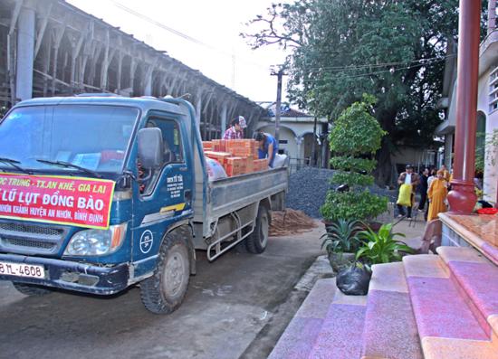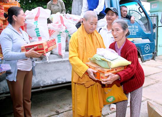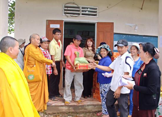 Phật tử An Khê tặng quà cho đồng bào lũ lụt ở An Nhơn, Bình Định