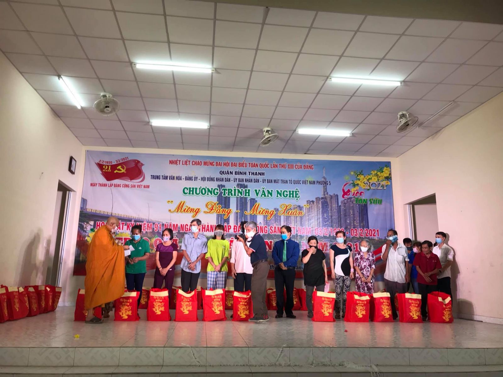 Trước thềm xuân Tân Sửu – 2021, nhằm hỗ trợ cho bà con có hoàn cảnh khó khăn để đón Tết trong sự vui tươi, ấm áp và hạnh phúc, tối ngày 31/01 (nhằm 19/Chạp năm Canh Tý), Ban TT-XH tịnh xá Trung Tâm do TT. Minh Lộc – Phó trụ trì tịnh xá Trung Tâm phối hợp với UBMTTQVN phường 5, quận Bình Thạnh thăm, trao tặng 100 phần quà đến bà con nghèo trong địa bàn phường.
