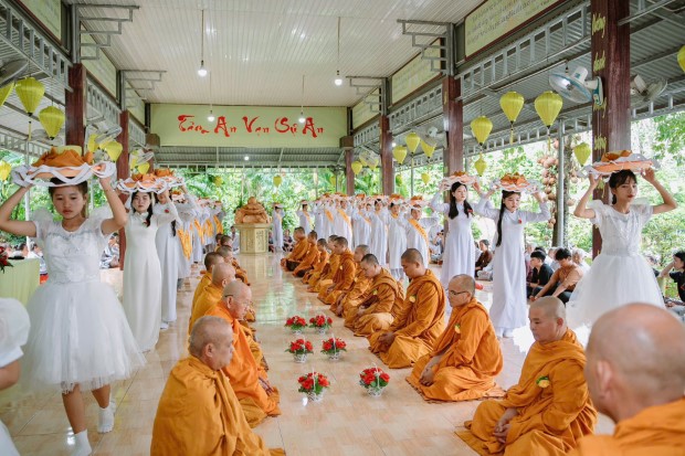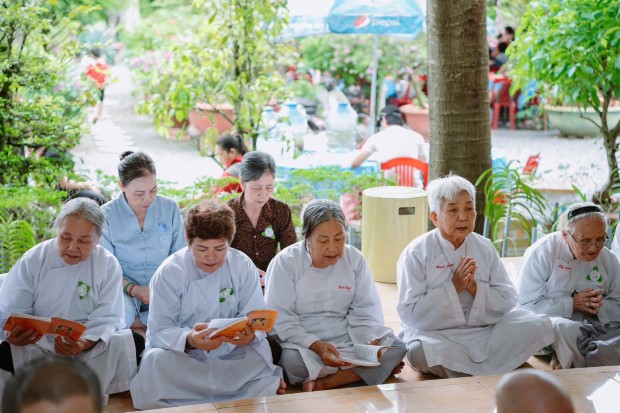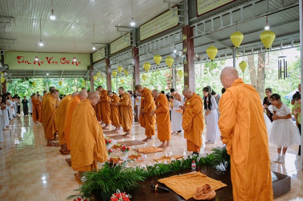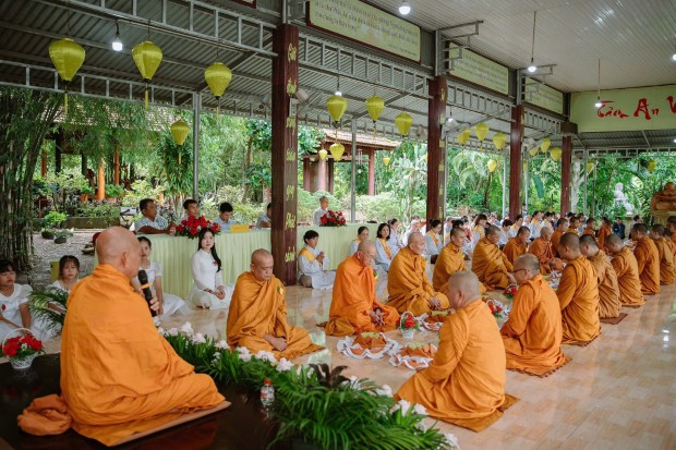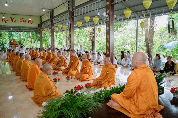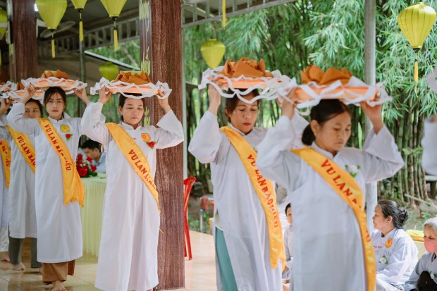 Dưới sự chủ trì của chư Tôn đức, toàn thể hội chúng đã trang nghiêm niêm hương bạch Phật, đồng tụng kinh Vu Lan, tưởng niệm thâm ân cha mẹ nhiều đời và phút mặc niệm tri ân anh linh các anh hùng liệt sĩ đã hy sinh cho Tổ quốc. Từng nén tâm hương như gởi gắm nỗi lòng hiếu hạnh, vừa chan chứa tình gia tộc, vừa thấm đượm nghĩa non sông.