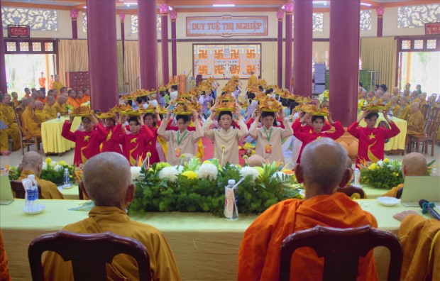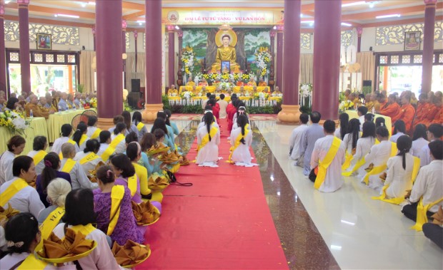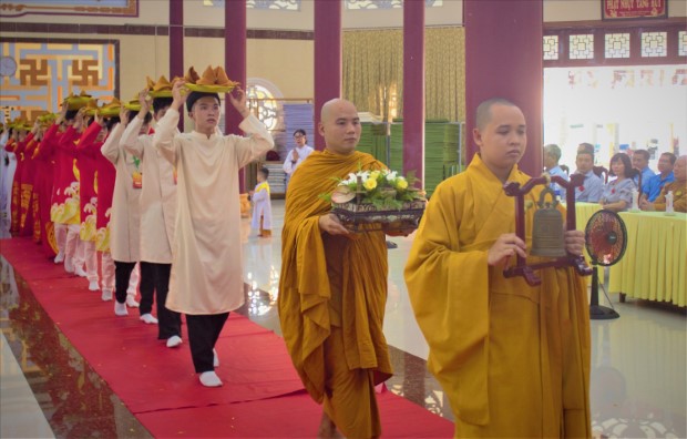 Trong không khí trang nghiêm của mùa Vu lan hiếu hạnh, nghi thức bông hồng cài áo đã trang trọng được cử hành. Cùng với đó là lễ diễu Y và cúng dường Pháp Y Ca-sa lên chư Tôn đức Tăng Ni.
