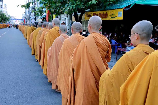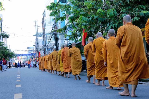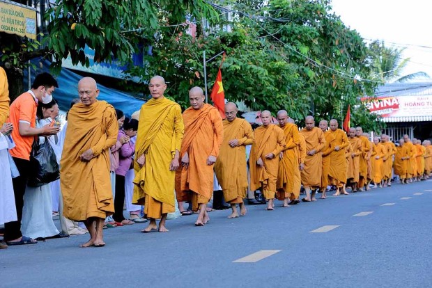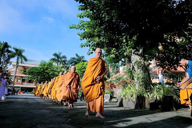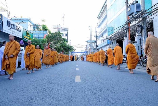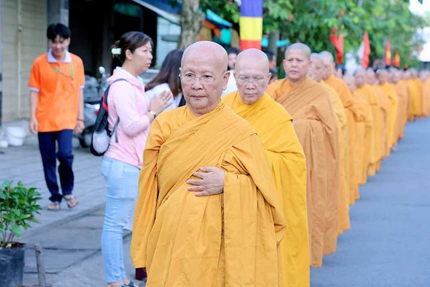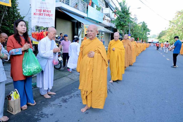 Sau thời khóa thiền hành và thiền tọa, sáng 5/9/2025 (14/7/Ất Tỵ), 160 vị Tôn đức Tăng Ni GĐ.I PGKS đã bắt đầu thực hiện nghi thức khất thực truyền thống trên con đường Nguyễn Thái Học, trong sự hiện diện thành kính của đông đảo Phật tử gần xa.