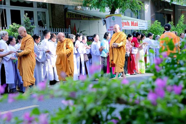 Kết thúc lộ trình khất thực, chư Tôn Đức Tăng Ni dời bước về trai đường độ ngọ trong không khí tôn nghiêm. Đây là dịp hàng Phật tử thành kính dâng trọn lòng tri ân đến chư Tôn đức Tăng Ni, đồng thời gửi gắm tâm nguyện hồi hướng công đức cho cửu huyền thất Tổ siêu sinh tịnh độ và cầu cho cha mẹ hiện tiền được tăng long phước thọ.