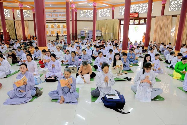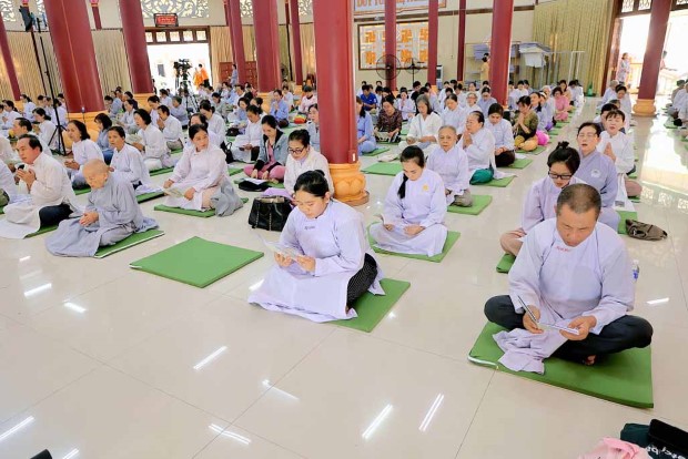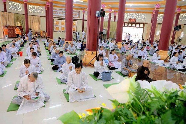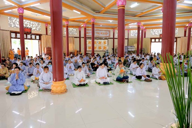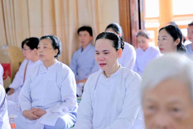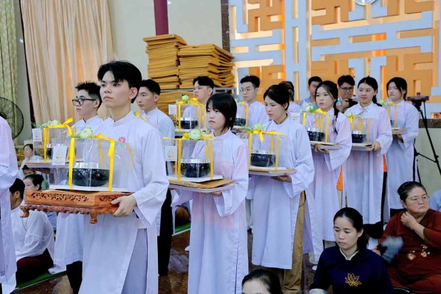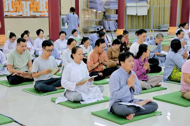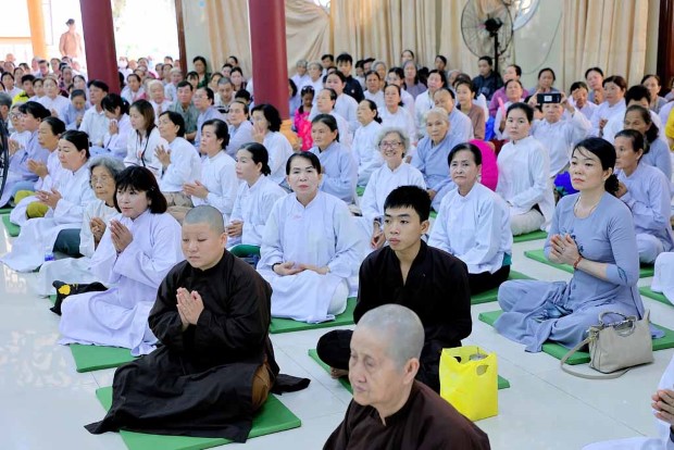 Hướng về Đại lễ Vu lan, sau nghi thức truyền Tam quy ngũ giới, toàn thể hội chúng đã trang nghiêm trì tụng kinh Vu Lan Bồn và Kinh Báo hiếu phụ mẫu trọng ân, dưới sự chủ trì của ĐĐ. Minh Tuấn. Từng lời kinh, câu kệ như đưa đại chúng trở về với sự tĩnh lặng bên trong, gột rửa phiền não, nhắc nhớ về ơn đức sinh dưỡng của mẹ cha, để mỗi người con Phật thực hành hiếu đạo ngay trong đời sống hiện tại.