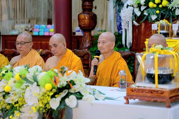 Trong giây phút thiêng liêng, Trưởng lão HT. Giác Giới đã ban đạo từ chứng minh, khai thị ý nghĩa thâm diệu của lễ dâng Y Bát. Hòa thượng tán dương công đức của hàng Phật tử, đồng thời khuyến tấn đại chúng lấy tinh thần Vu lan làm hạnh nguyện thường hằng: “Giữ tâm thanh tịnh, nuôi dưỡng trí tuệ, trọn vẹn giới hạnh và thực hành hiếu đạo trong từng sinh hoạt thường nhật”.
