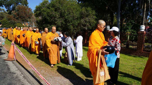 Được biết, trước thềm Đại lễ Vu lan, chư Tôn đức Tăng Ni dưới sự hướng dẫn của HT. Minh Hiếu đã tái hiện hình ảnh trì bình khất thực hóa duyên trên đất Perth. Hình ảnh chư Tăng uy nghiêm, thanh thoát đã làm lay động niềm kính tín nơi Phật tử, khiến không gian nơi đây tràn đầy xúc cảm thiêng liêng.