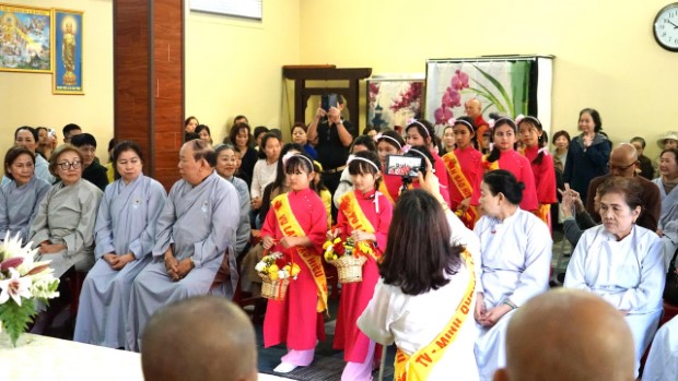 Chư Ni tham dự với sự hiện diện của SC. Như Liên – Trụ trì Minh Quang (Nam Úc); SC. Hạnh Liên – Ni chúng Tổ đình Minh Quang (Sydney) và chư Ni các vùng lân cận, cùng đông đảo đồng hương Phật tử tại thành phố Perth đồng về dự lễ.