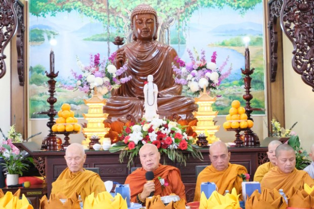 Ban đạo từ chứng minh lòng thành kính của hàng Phật tử, HT. Minh Hiếu đã sách tấn hàng Phật tử gìn giữ tâm hiếu hạnh, xem hiếu đạo là nền tảng của mọi công đức. Hòa thượng nhắc lại nguồn gốc của ngày lễ Vu Lan, xuất phát từ câu chuyện Tôn giả Mục-Kiền-Liên cứu mẹ, nhờ thần lực quán thấy mẹ bị đọa nơi cảnh giới khổ đau, nên cầu thỉnh Đức Phật chỉ dạy. Đức Phật dạy nhờ vào sức chú nguyện thanh tịnh của chư Tăng trong mùa an cư kiết hạ, kết hợp cùng tâm chí thành của người con mà cứu thoát cha mẹ. Từ đó, ngày Rằm tháng Bảy trở thành ngày báo hiếu, gợi nhắc mỗi người con Phật nhớ ơn, báo ơn và nuôi dưỡng tâm từ bi.
