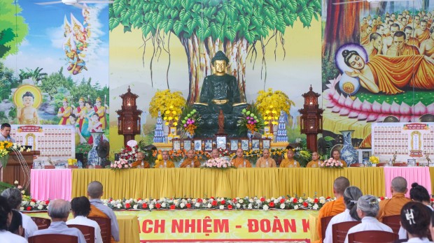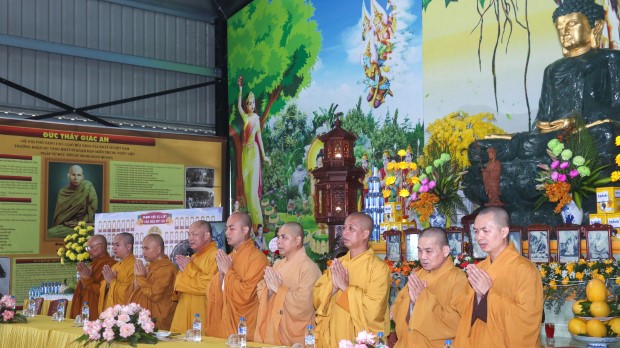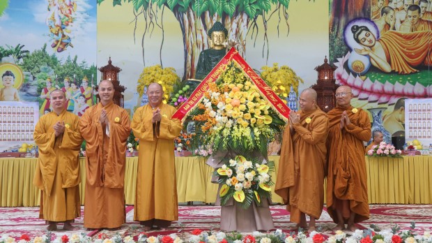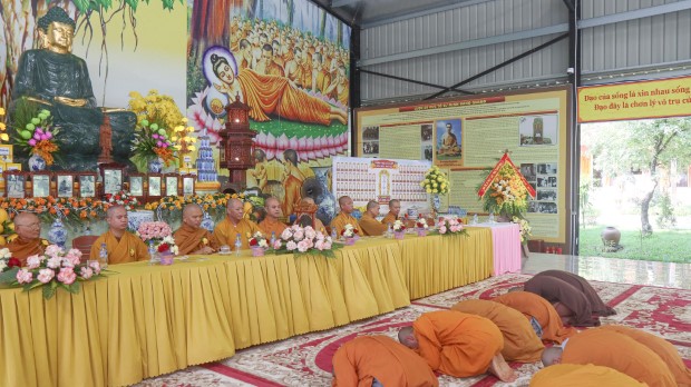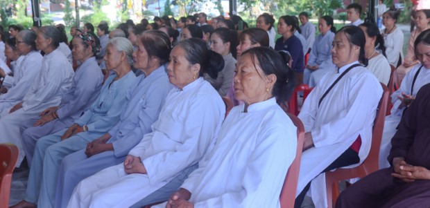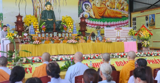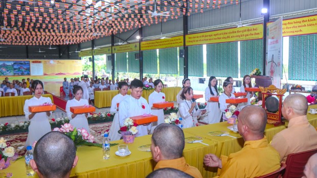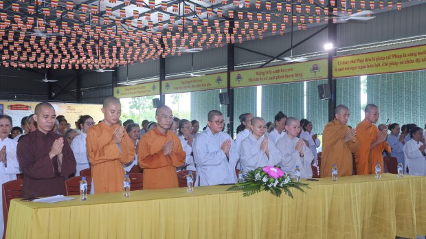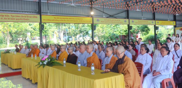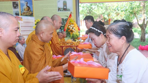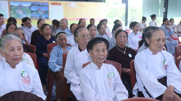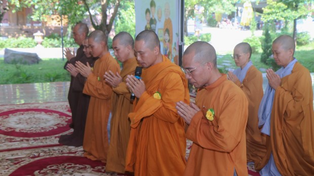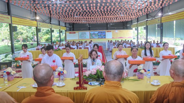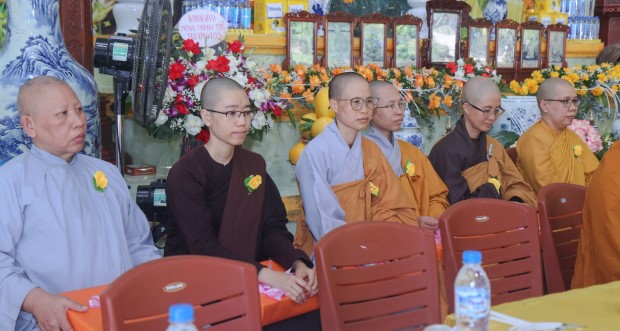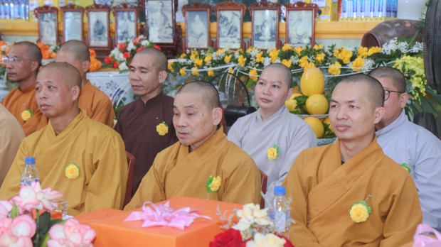 Khép lại buổi lễ, Phật tử Quảng Phương thay mặt đại chúng dâng lời khánh tuế và Tứ sự cúng dường: “Chúng con nguyện cầu chư Tăng Ni chánh thân an lạc, tuệ giác thường chiếu, pháp duyên trường cửu, mãi là bóng cây đại thọ che chở, là ngọn hải đăng soi lối cho chúng con và muôn loài”.