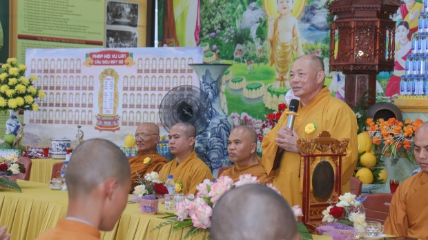 Ban đạo từ, TT. Thích Tâm Định tán dương công hạnh tu tập và tinh thần hiếu đạo của toàn thể hội chúng, đồng thời nhấn mạnh: "Vu Lan không chỉ là lễ hội tâm linh mà còn là dịp soi rọi lại chính mình, để hiếu hạnh được vun bồi, để Phật pháp tỏa sáng giữa đời".