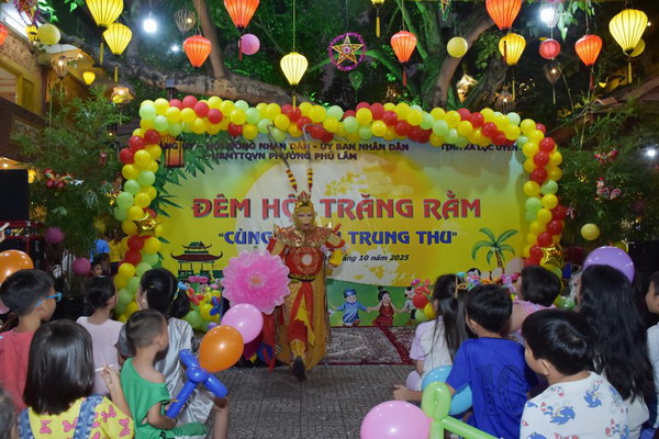 Chương trình tiếp nối với những tiết mục văn nghệ vui tươi, mang đậm sắc màu Trung thu truyền thống. Hình ảnh chị Hằng, chú Cuội, thỏ ngọc được tái hiện sinh động qua phần hóa trang của các đoàn viên thanh niên. Đặc biệt, sự góp mặt của ca sĩ Hồng Loan cùng phần phát quà Trung thu đã mang lại bầu không khí ấm áp, chan hòa niềm vui và tiếng cười trẻ thơ.